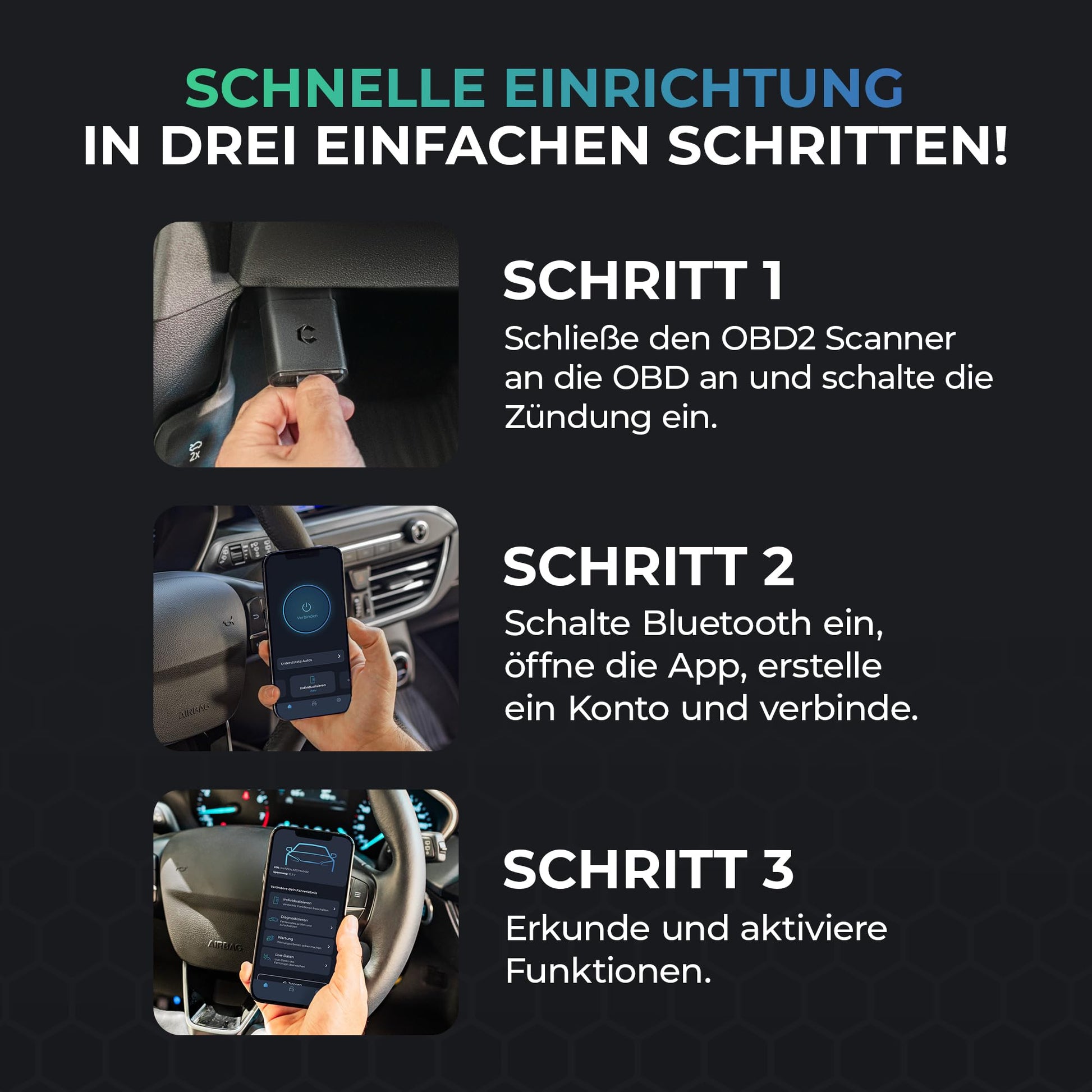 - Umfassende Fahrzeugdiagnose: Identifizieren Sie Probleme und lesen Sie Fehlercodes selbst aus. Mit dem Adapter und der App können Sie zudem verborgene Einstellungen Ihres Fahrzeugs freischalten und anpassen.