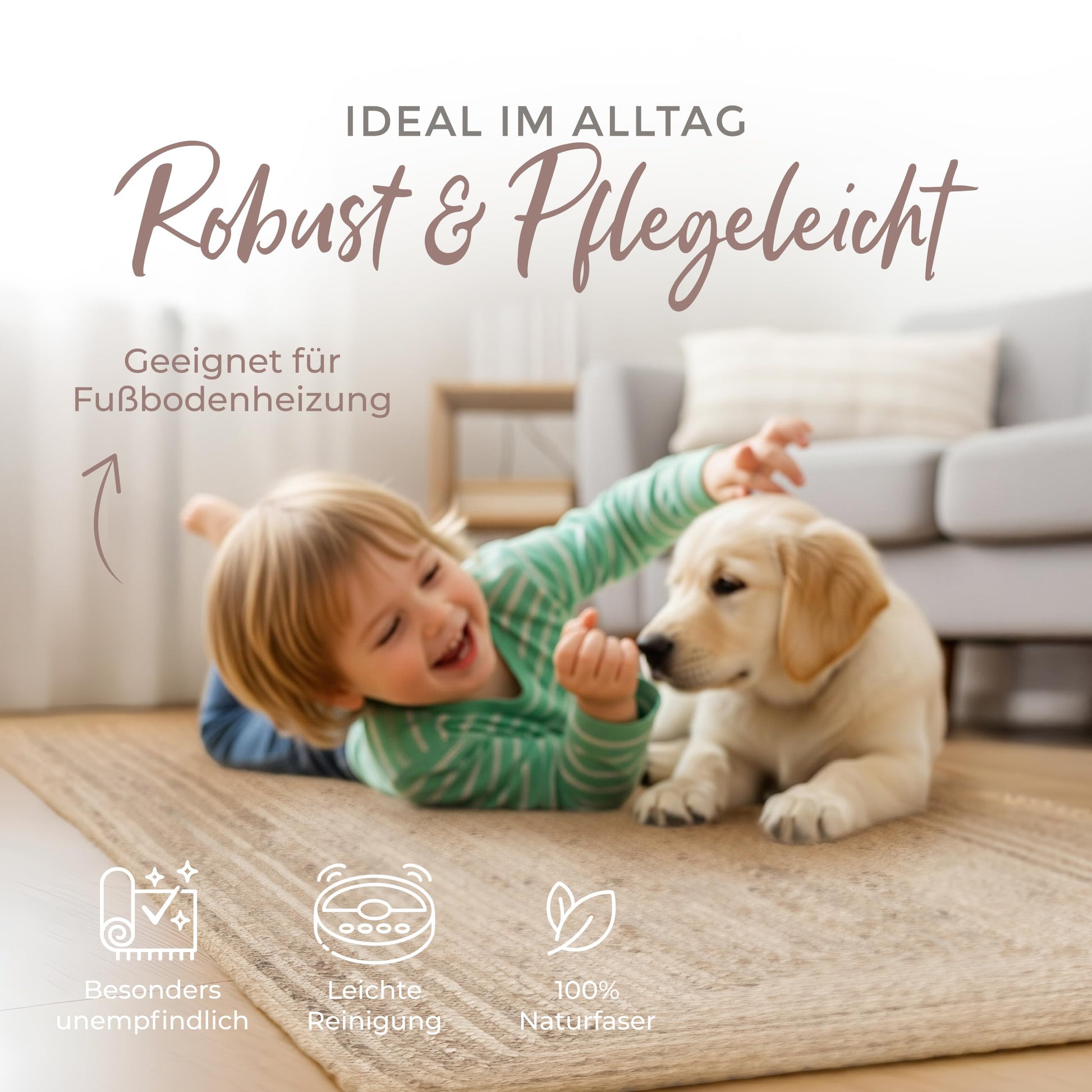- Hochwertige Verarbeitung: Gefertigt aus 100% reiner Jute, was den Teppich besonders robust und langlebig macht.