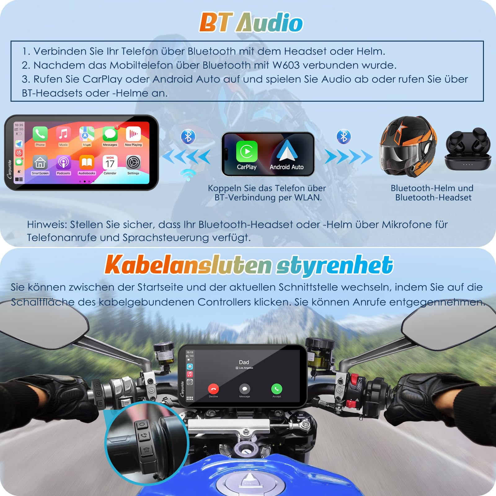 Carpuride W603 Motorrad-Display für CarPlay/Android Auto - 6.3 Zoll