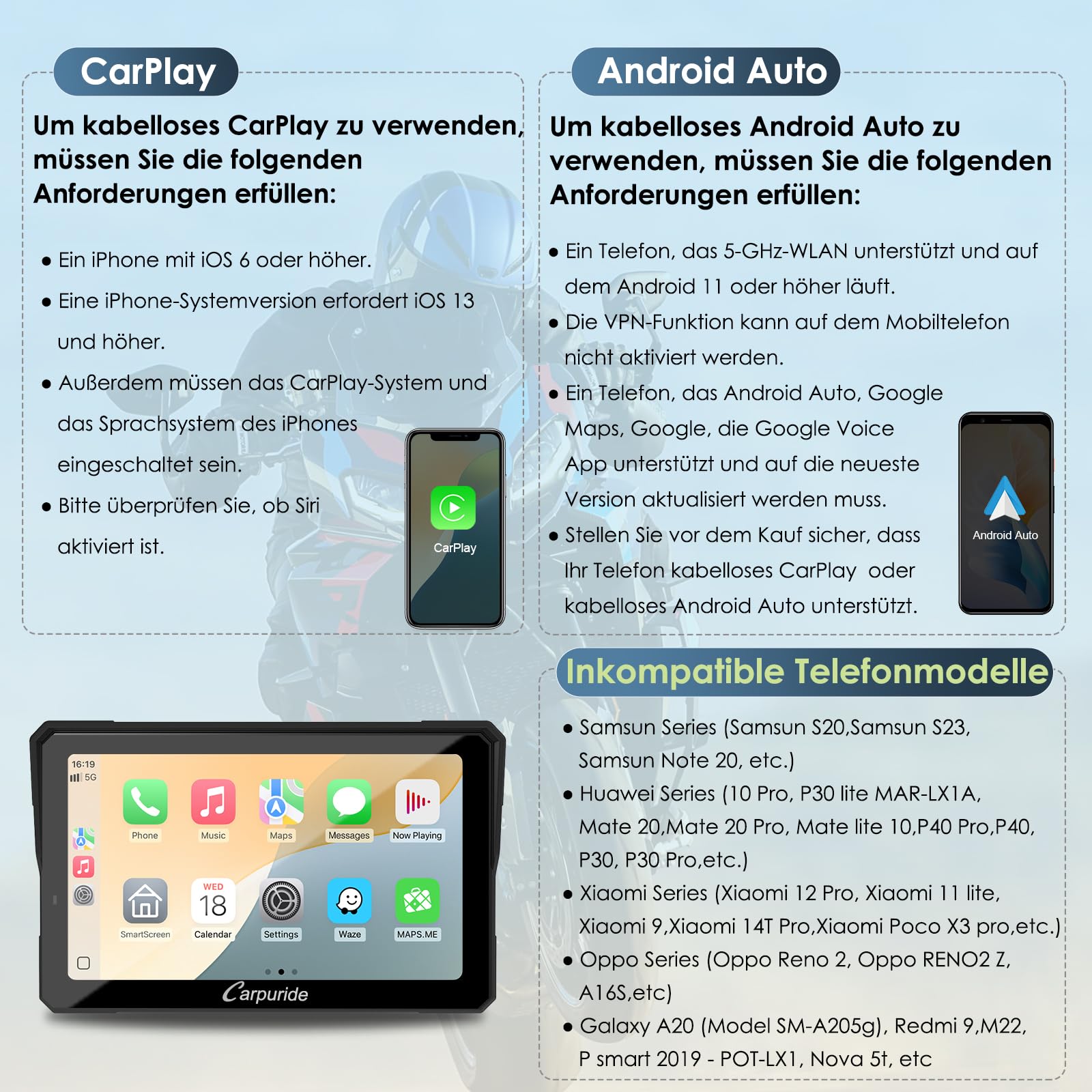 Carpuride W702BS Pro Motorrad CarPlay Display 7" für BMW