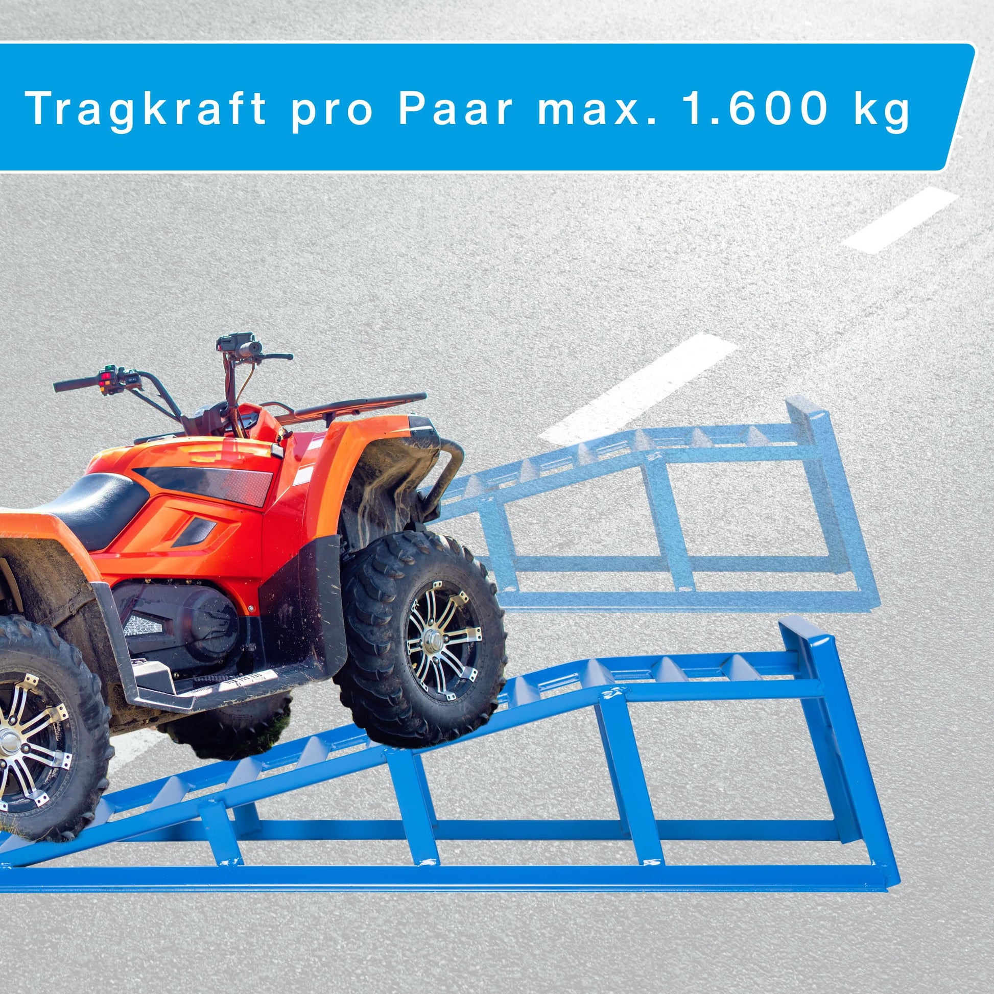 - Hohe Belastbarkeit: Das Rampen-Paar ist für eine Gesamtbelastung von bis zu 1,6 Tonnen ausgelegt und eignet sich für die meisten gängigen Personenwagen.