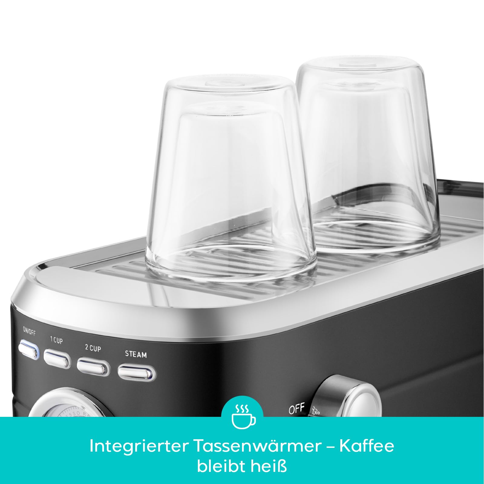 - Leistungsstarke 20-Bar-Pumpe: Eine professionelle italienische Pumpe mit 20 Bar Druck und 1350 Watt Leistung sorgt für eine optimale Extraktion des Kaffeearomas und eine perfekte Crema.