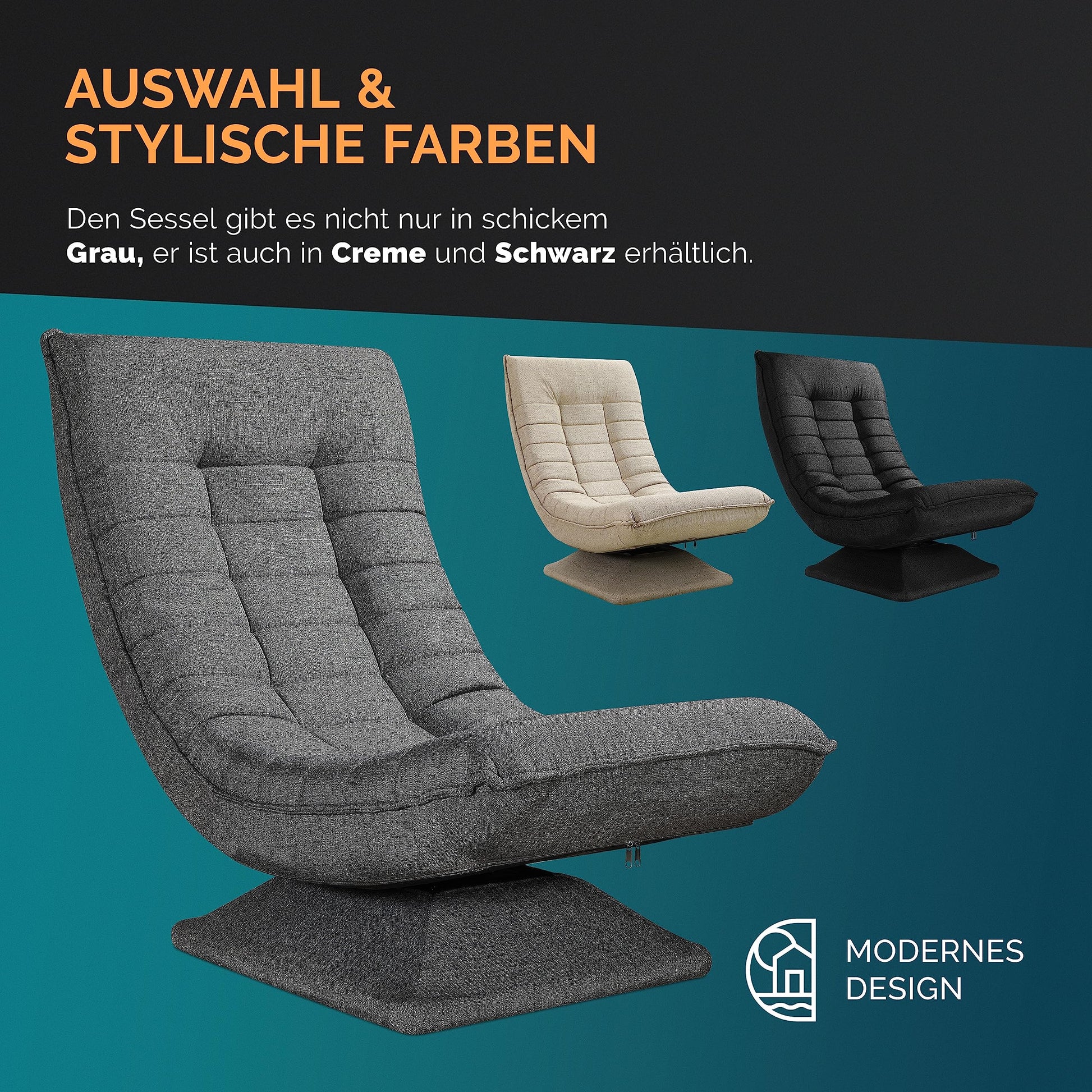 - 360° Drehfunktion: Der Sessel lässt sich vollständig um die eigene Achse drehen und bietet so maximale Bewegungsfreiheit und Flexibilität im Raum.