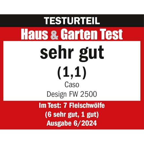 Der CASO FW 2500 ist ein hocheffizienter Fleischwolf, der mit seiner beeindruckenden Leistung und dem vielseitigen Zubehör neue Massstäbe in Ihrer Küche setzt. Kreieren Sie mühelos frische und individuelle Spezialitäten, von herzhaft bis süss.