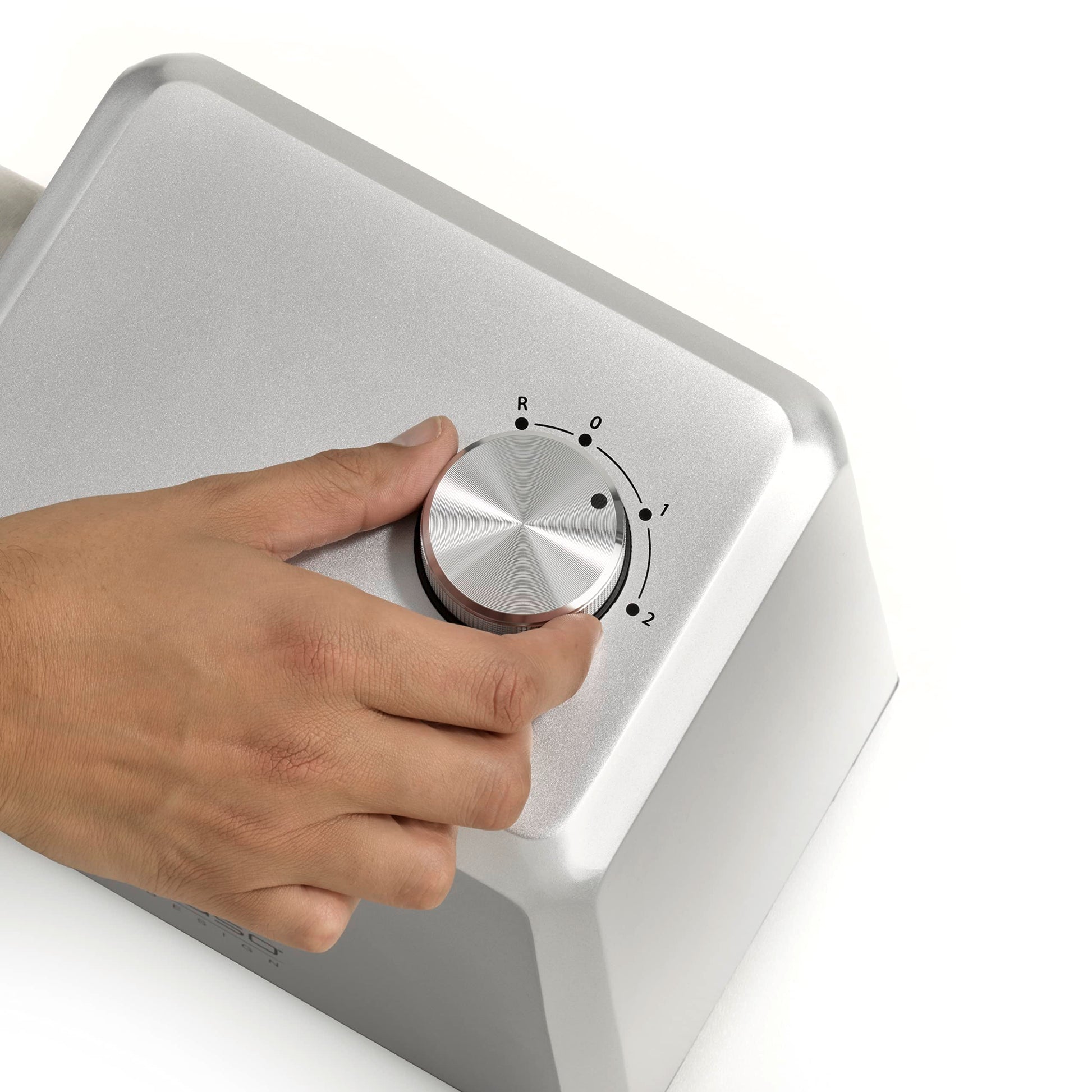 Die praktische Rücklauf-Funktion löst eventuelle Blockaden schnell per Knopfdruck, ohne dass Sie das Gerät zerlegen müssen. Der leistungsstarke Gleichstrom-Motor (DC) ist im Vergleich zu herkömmlichen AC-Motoren nicht nur langlebiger, sondern arbeitet auch spürbar leiser, was die Zubereitung in der Küche deutlich angenehmer macht.