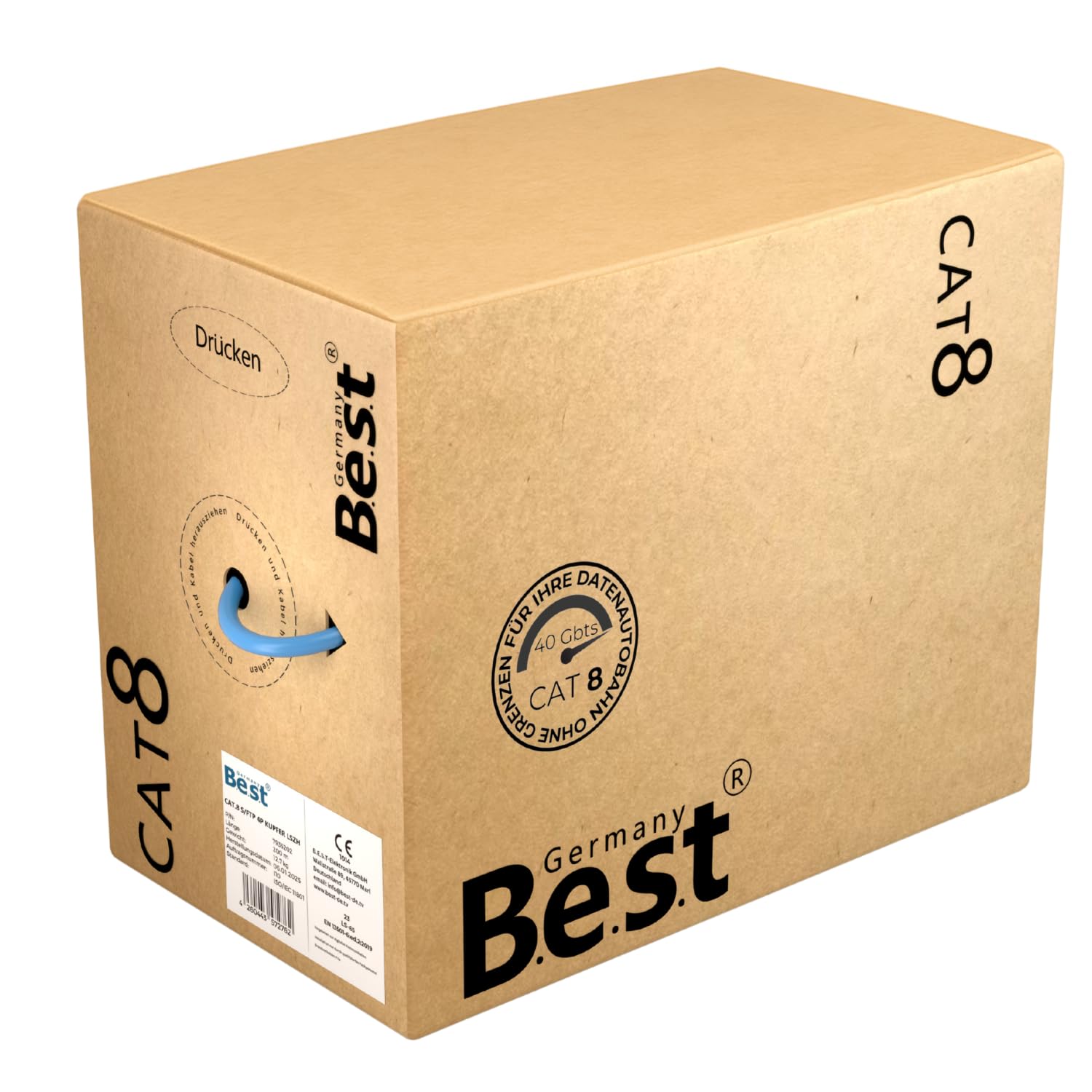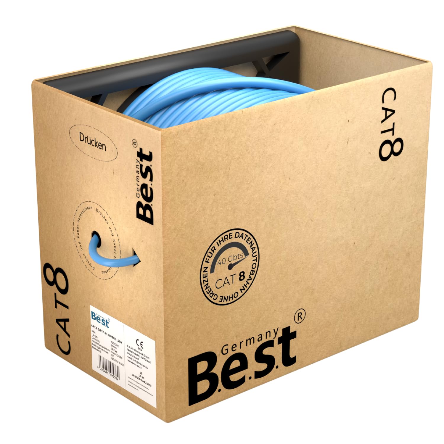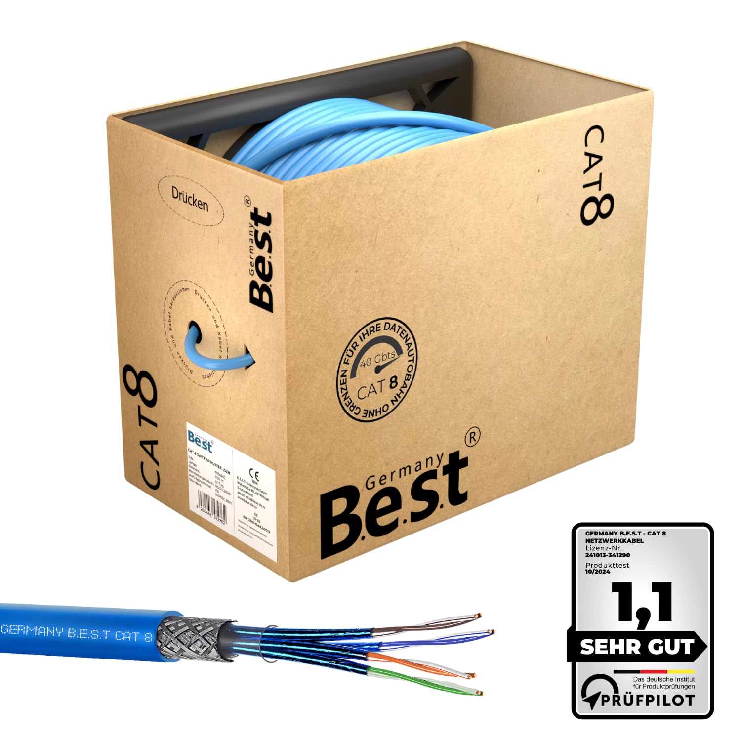 - Kabeltyp: Cat 8.1 Verlegekabel, Simplex