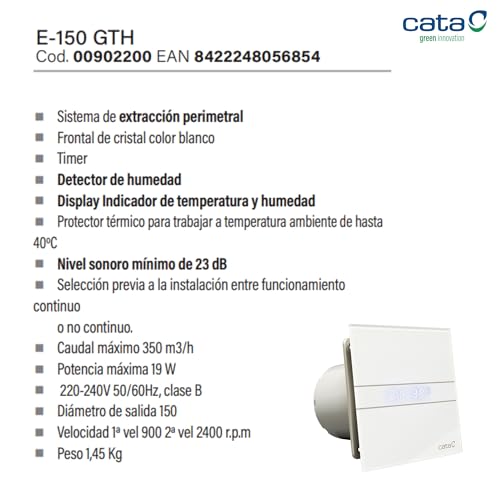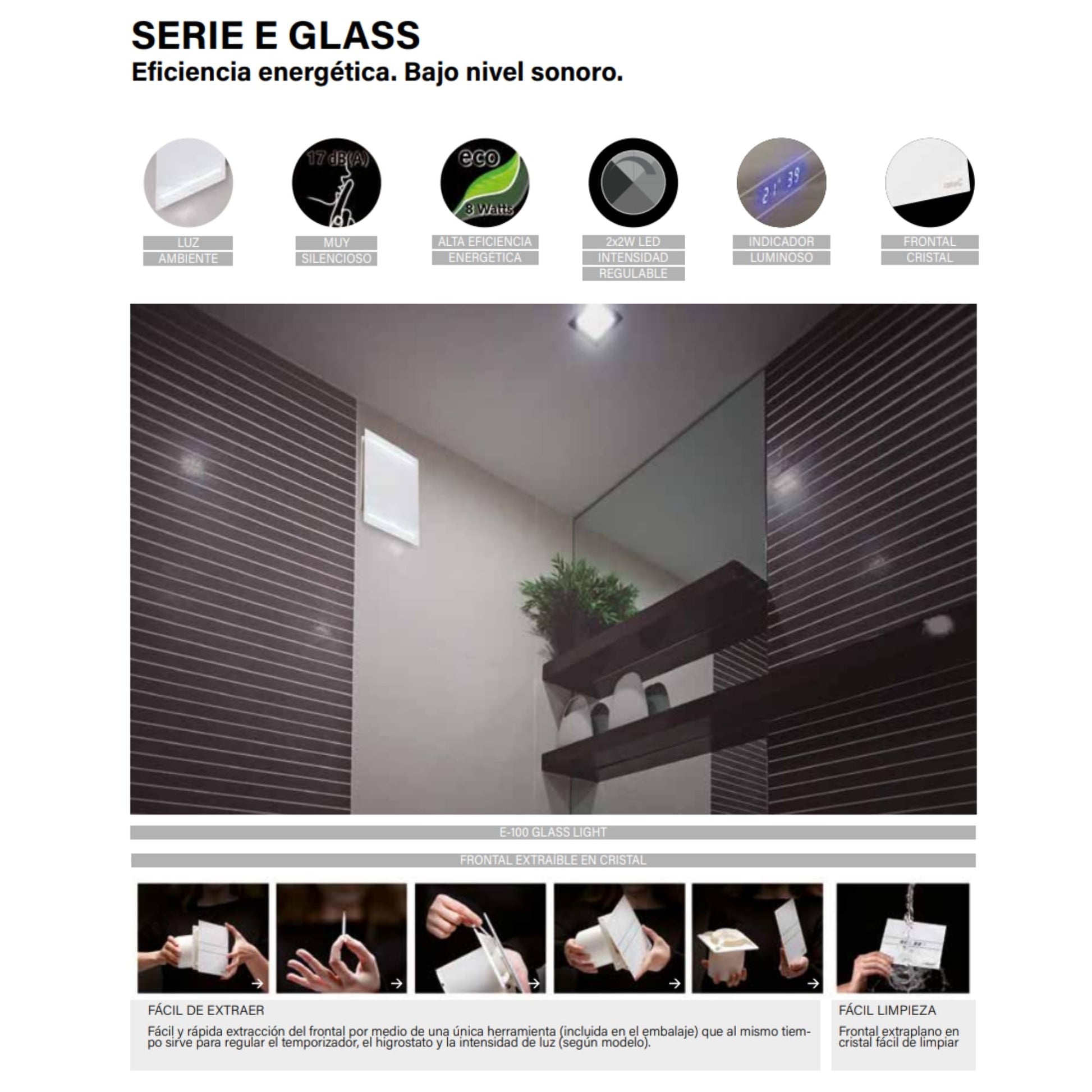 Cata E-100 GTH Abluftventilator Bad - Glas, Timer, Hygro