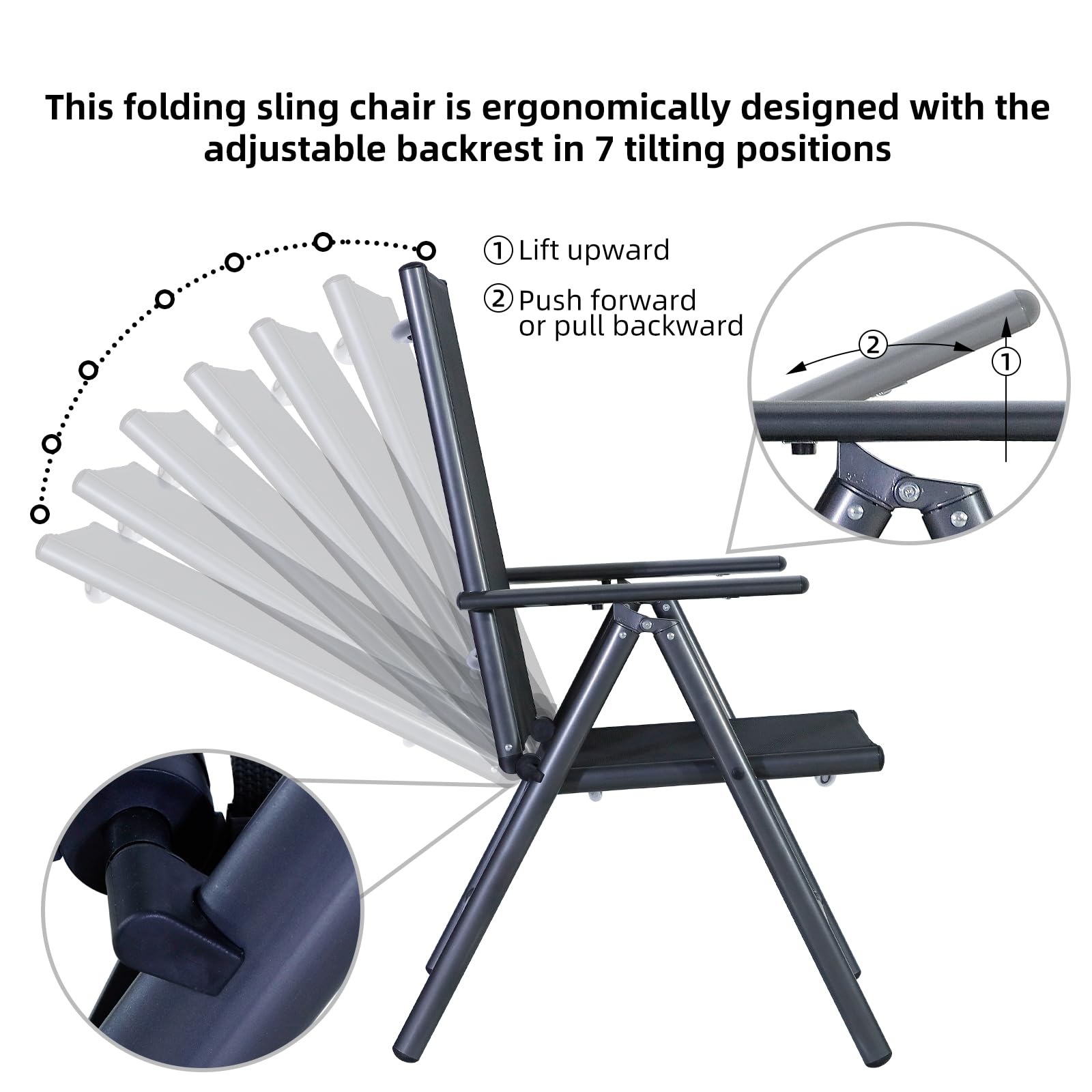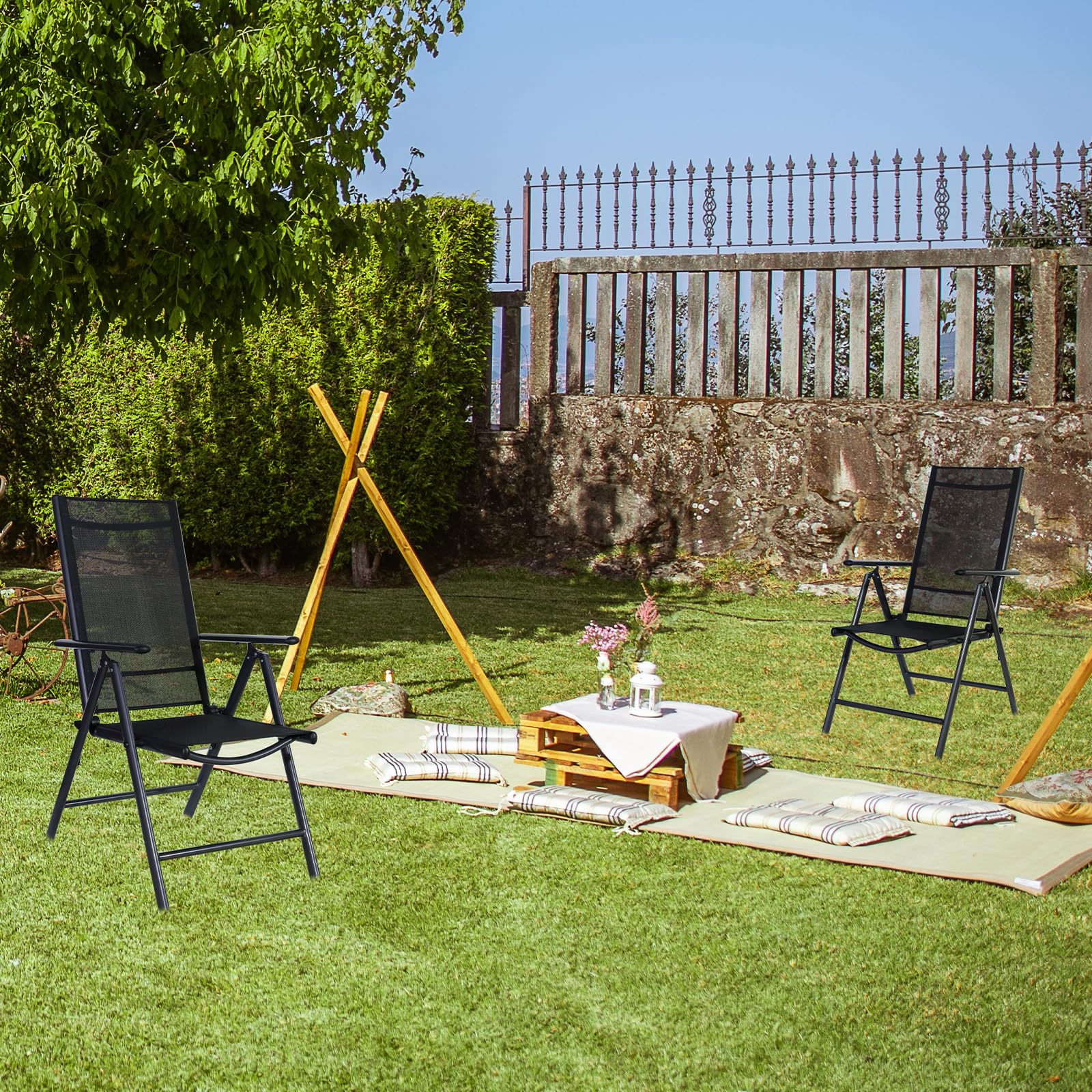 CCLIFE Breeze Gartenstuhl 2er Set Hochlehner Klappbar – Dunkelgrau