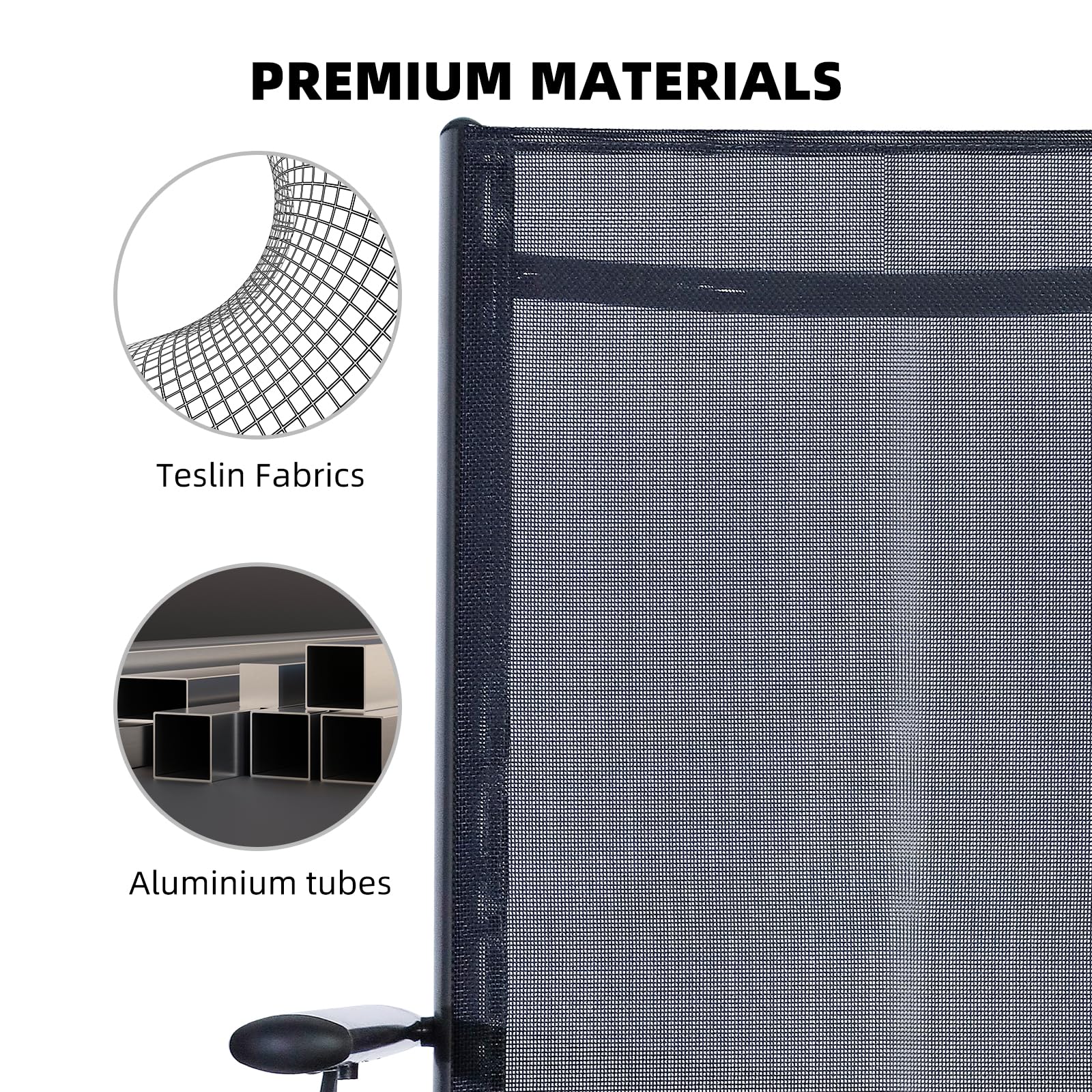 Jeder Stuhl ist für eine maximale Belastbarkeit von bis zu 150 kg ausgelegt. Der stabile Aluminiumrahmen sorgt für einen sicheren und robusten Stand.