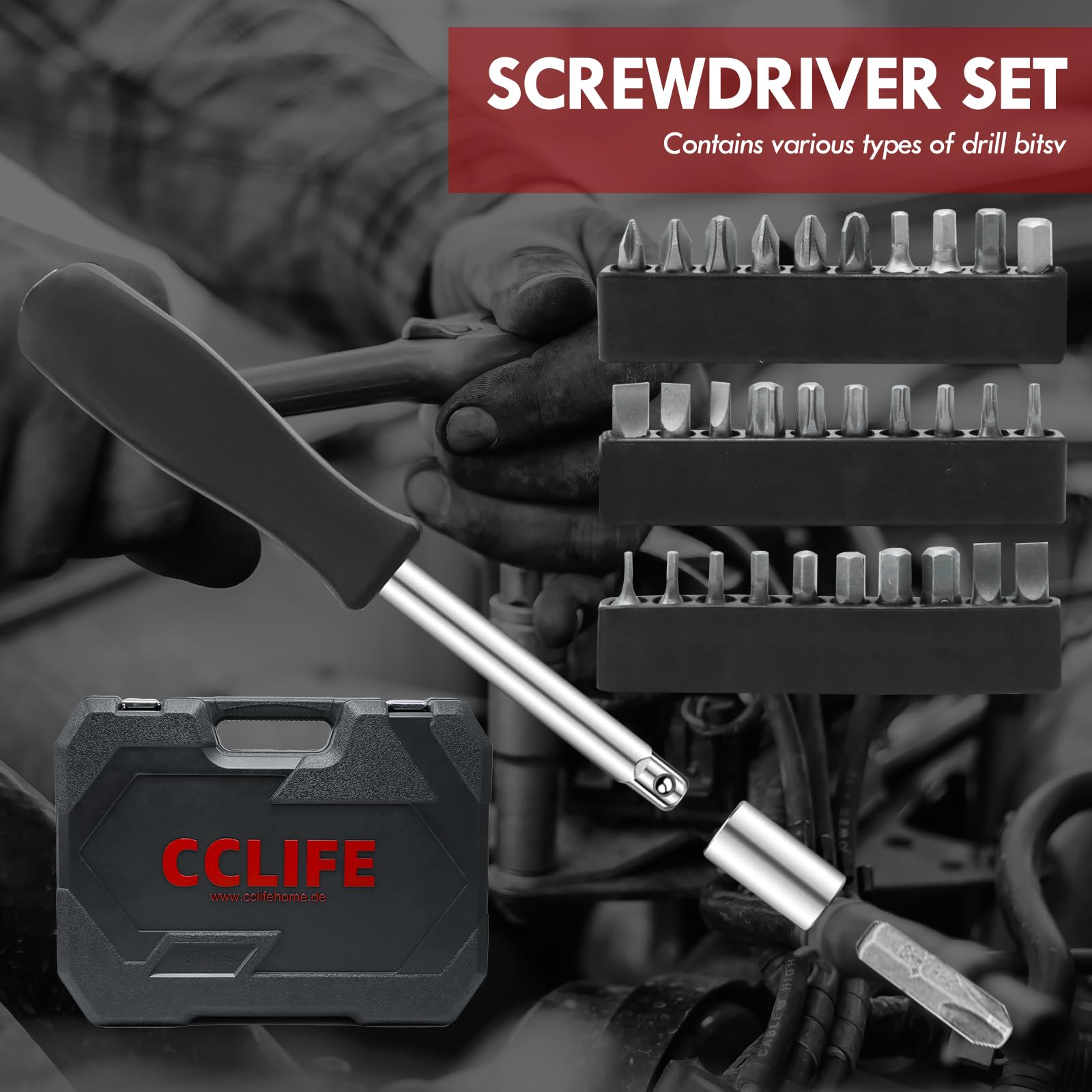 Er ist sowohl für ambitionierte Heimwerker als auch für den professionellen Einsatz in Werkstätten oder Garagen konzipiert. Dank der hochwertigen Materialien und des umfassenden Inhalts ist er eine zuverlässige Lösung für vielfältige Schraub- und Reparaturarbeiten.