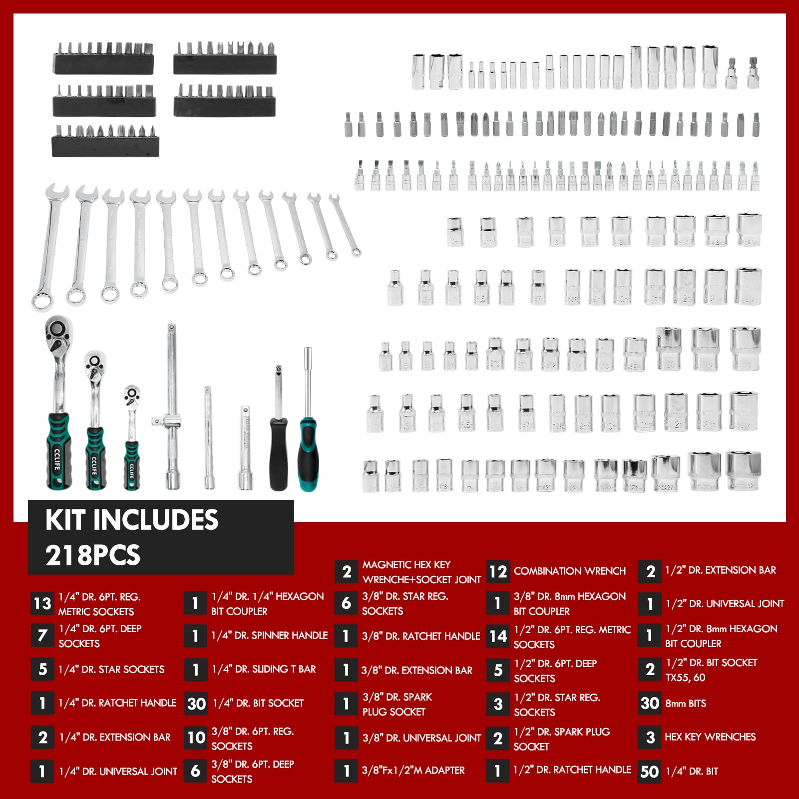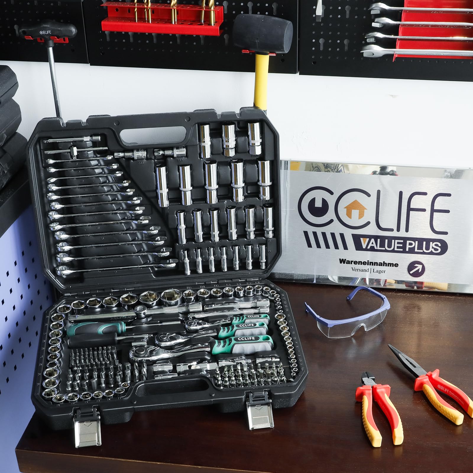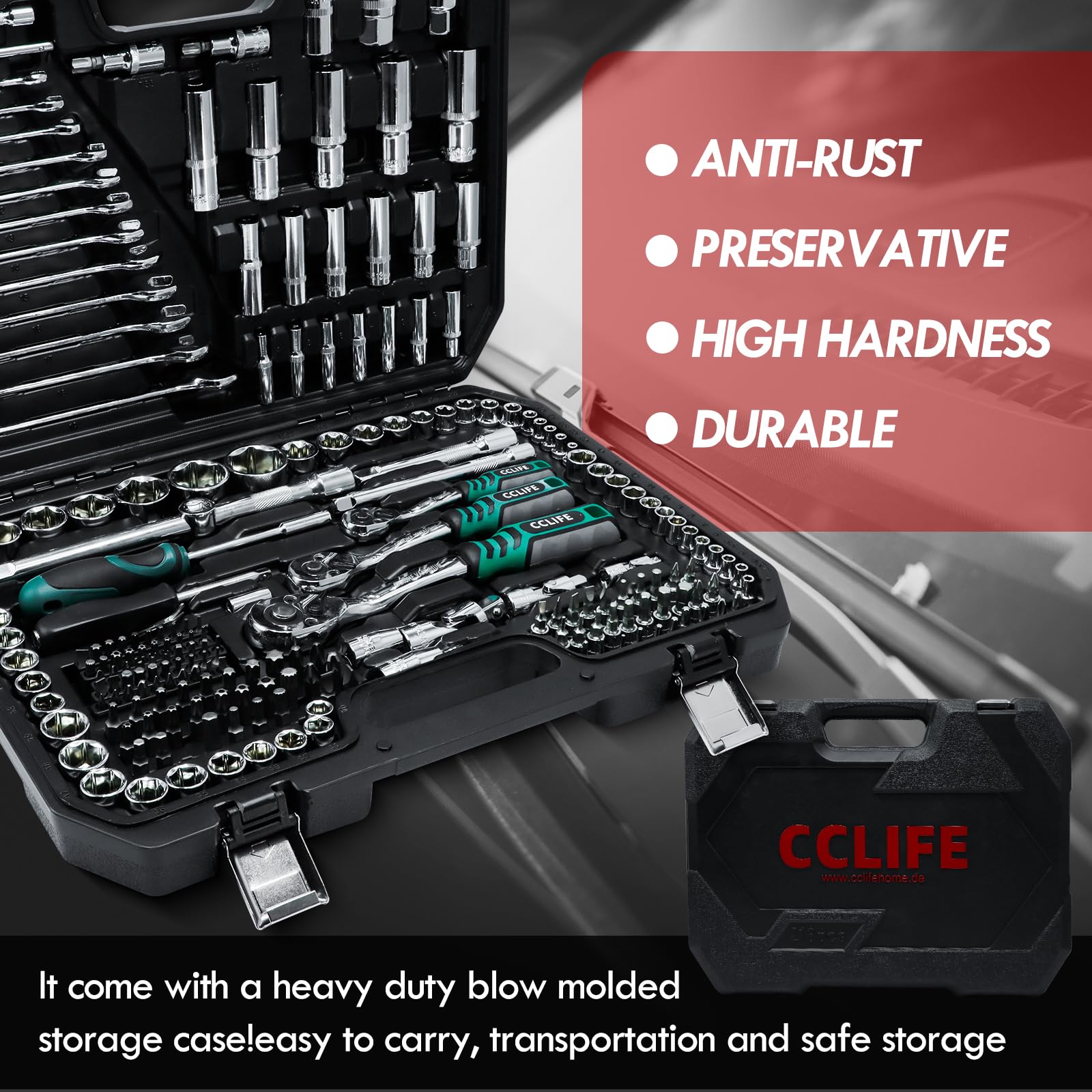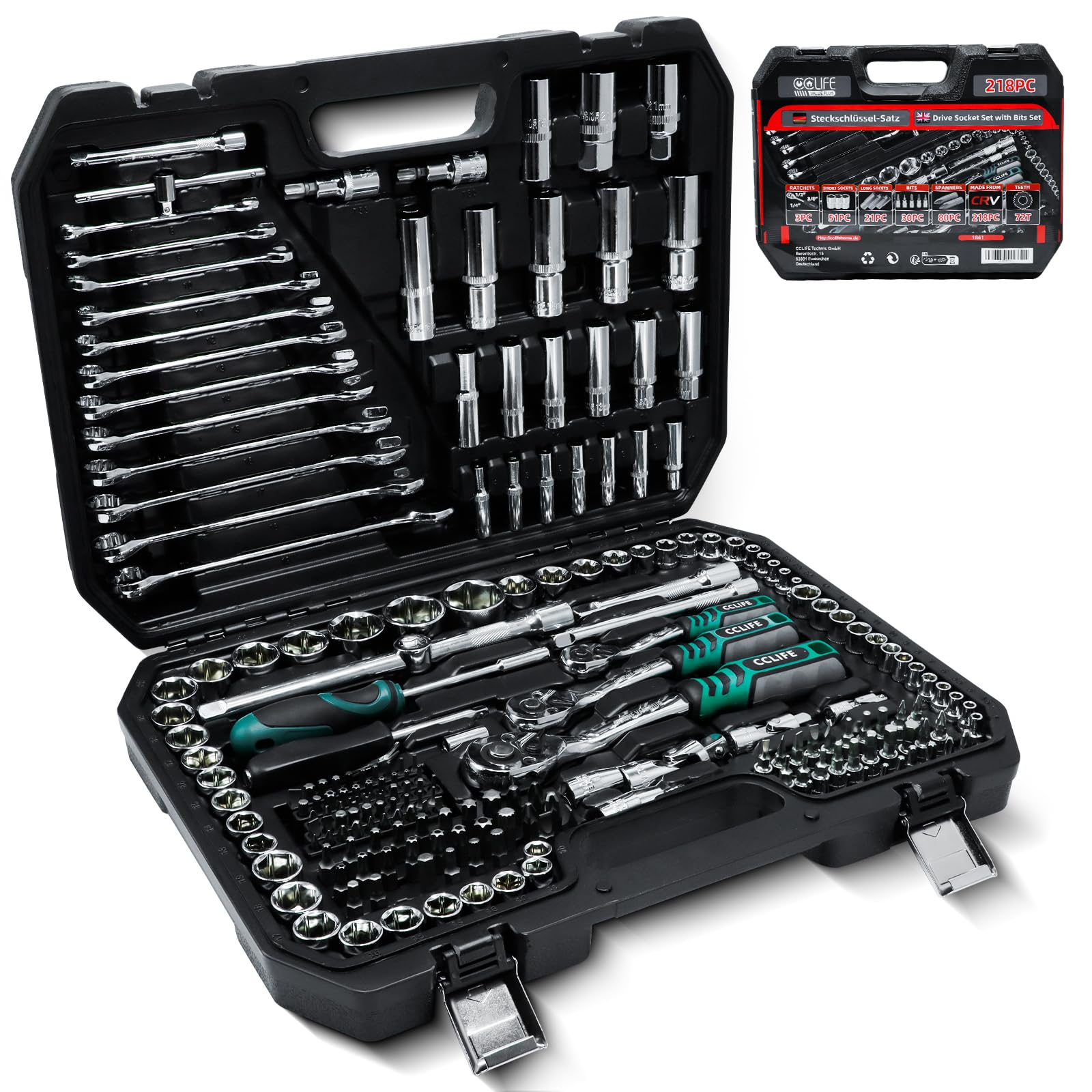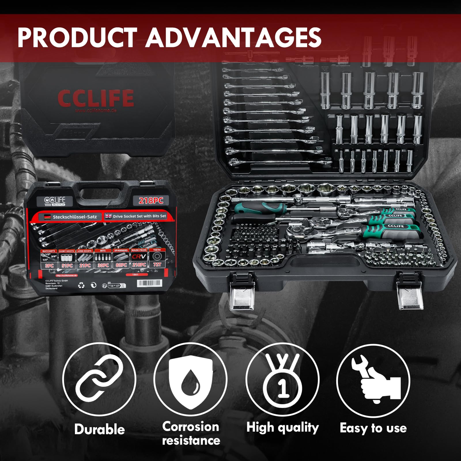 CCLIFE Steckschlüsselsatz 218-teilig Cr-V - 1/2" 1/4" 3/8" Ratschenkoffer