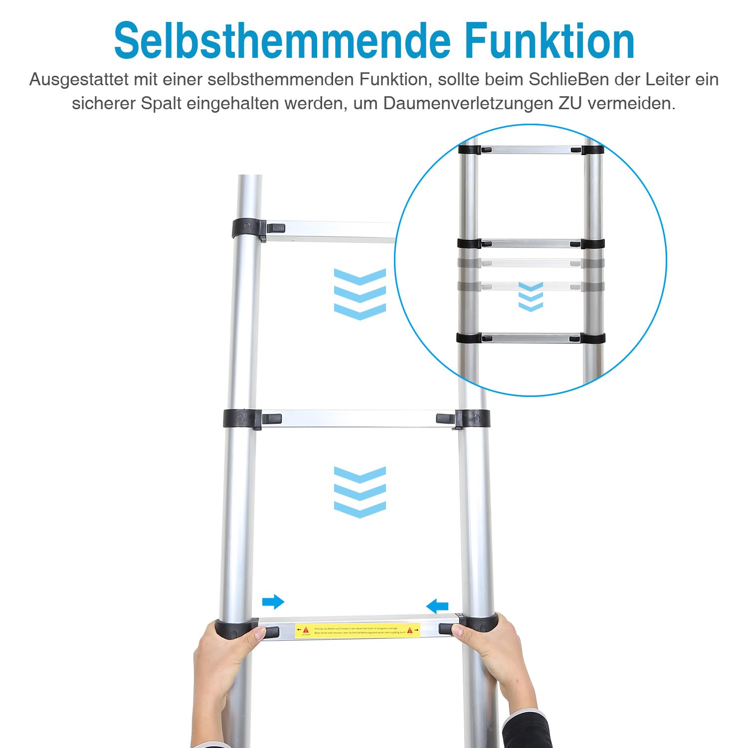 Cecaylie 4,4m Teleskopleiter Aluminium - 150 kg Belastbarkeit