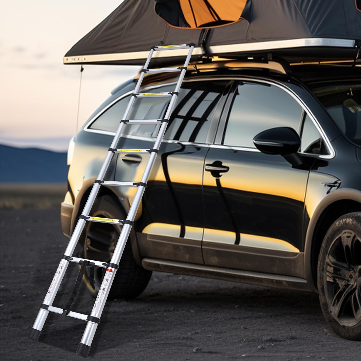 Die Leiter erreicht eine maximale Auszugslänge von 4,40 Metern mit 15 Stufen. Im zusammengeschobenen Zustand ist sie mit nur 91 cm Höhe äusserst kompakt und mit einem Gewicht von 12 kg leicht zu transportieren und zu verstauen.