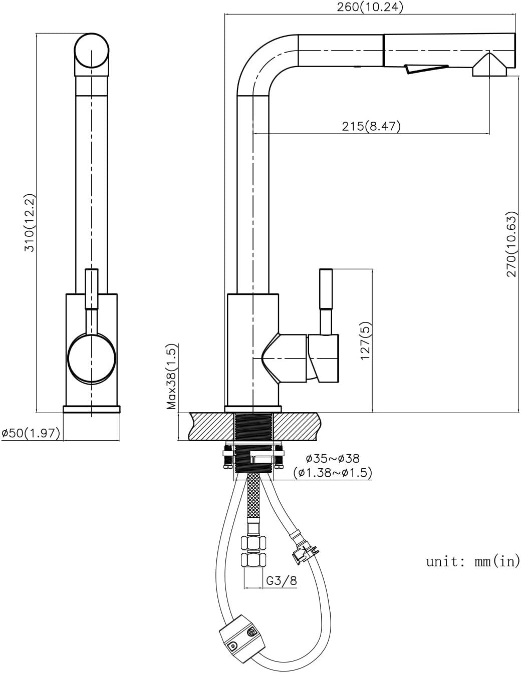 - Ausziehbare Handbrause: Bietet maximale Flexibilität und eine erweiterte Reichweite im und um das Spülbecken.