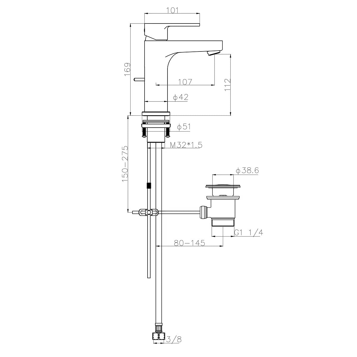 CECIPA MIRAS-B Waschtischarmatur Schwarz mit Zugstange