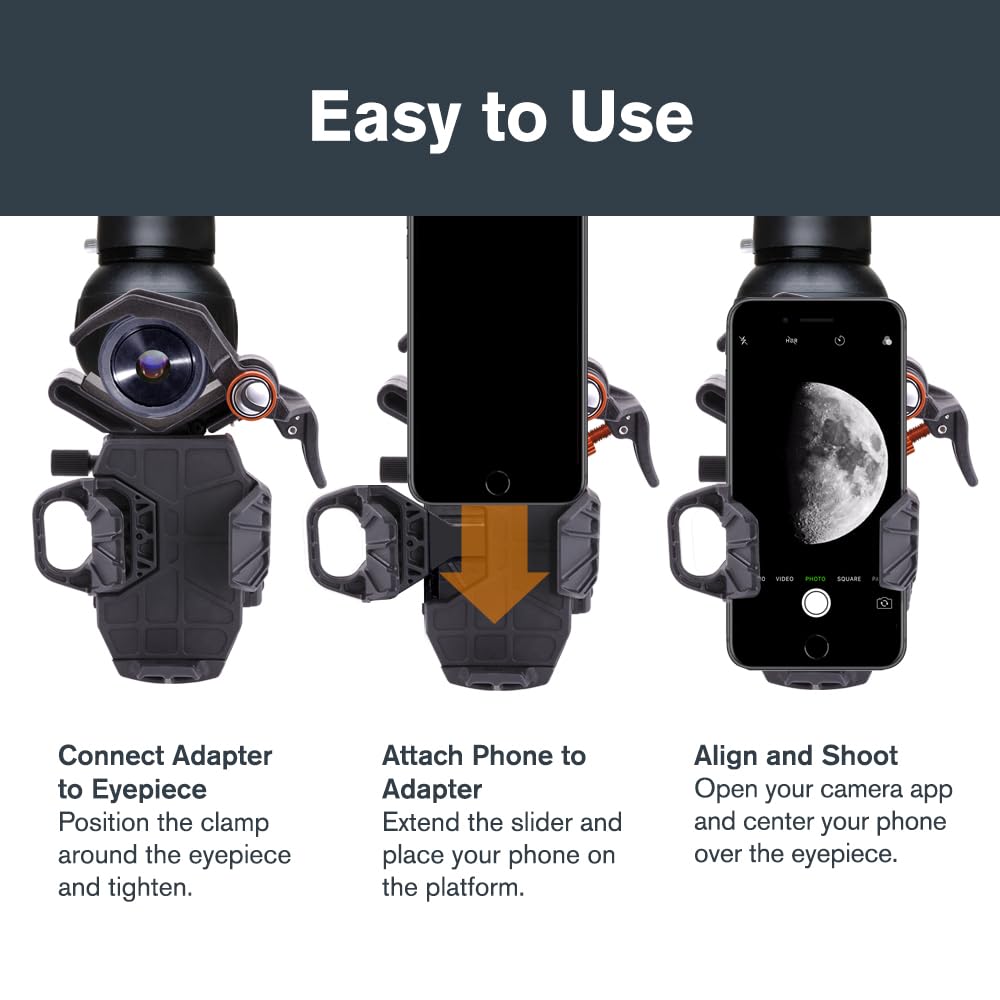 - Universelle Digiskopie-Lösung: Verbindet Ihr Smartphone mit Teleskopen, Spektiven, Ferngläsern, Monokularen und Mikroskopen für detailreiche Foto- und Videoaufnahmen durch das Okular.