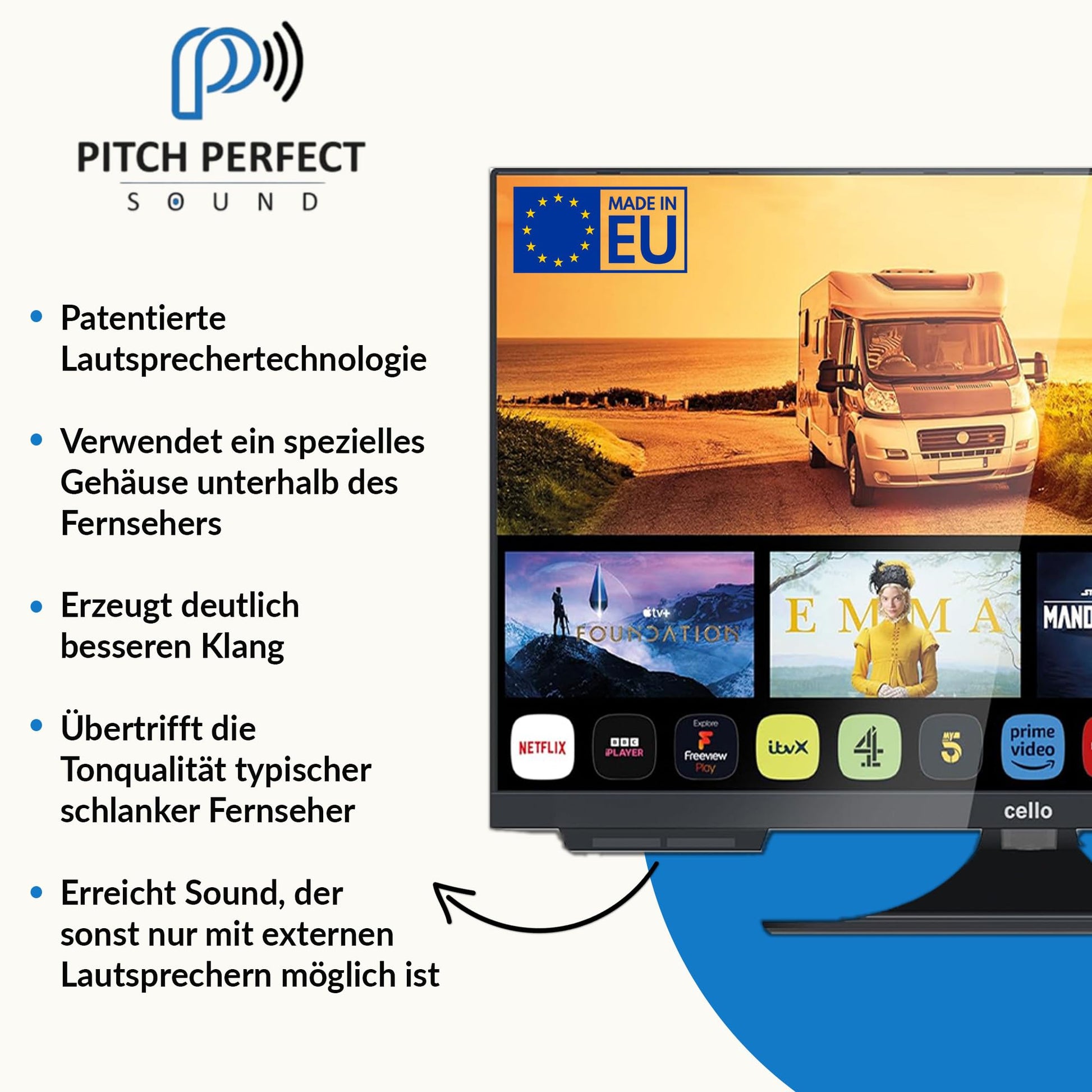Der Cello C2224WS ist die ultimative All-in-One-Lösung für alle, die auch auf Reisen nicht auf erstklassige Smart-TV-Unterhaltung verzichten möchten.