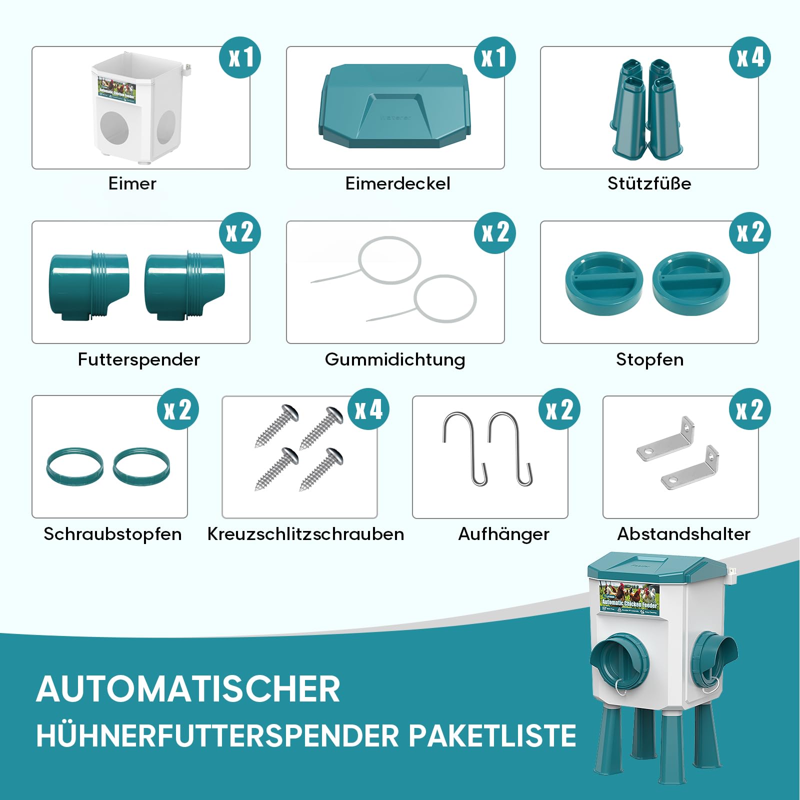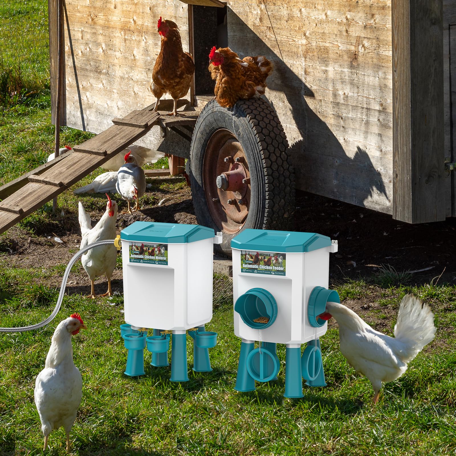 Dieses Set aus Futterautomat und Hühnertränke sorgt für eine zuverlässige und mühelose Versorgung Ihres Geflügels. Es stellt sicher, dass Ihre Hühner jederzeit Zugang zu frischem Wasser und Futter haben, auch wenn Sie beschäftigt sind oder für kurze Zeit abwesend sind.