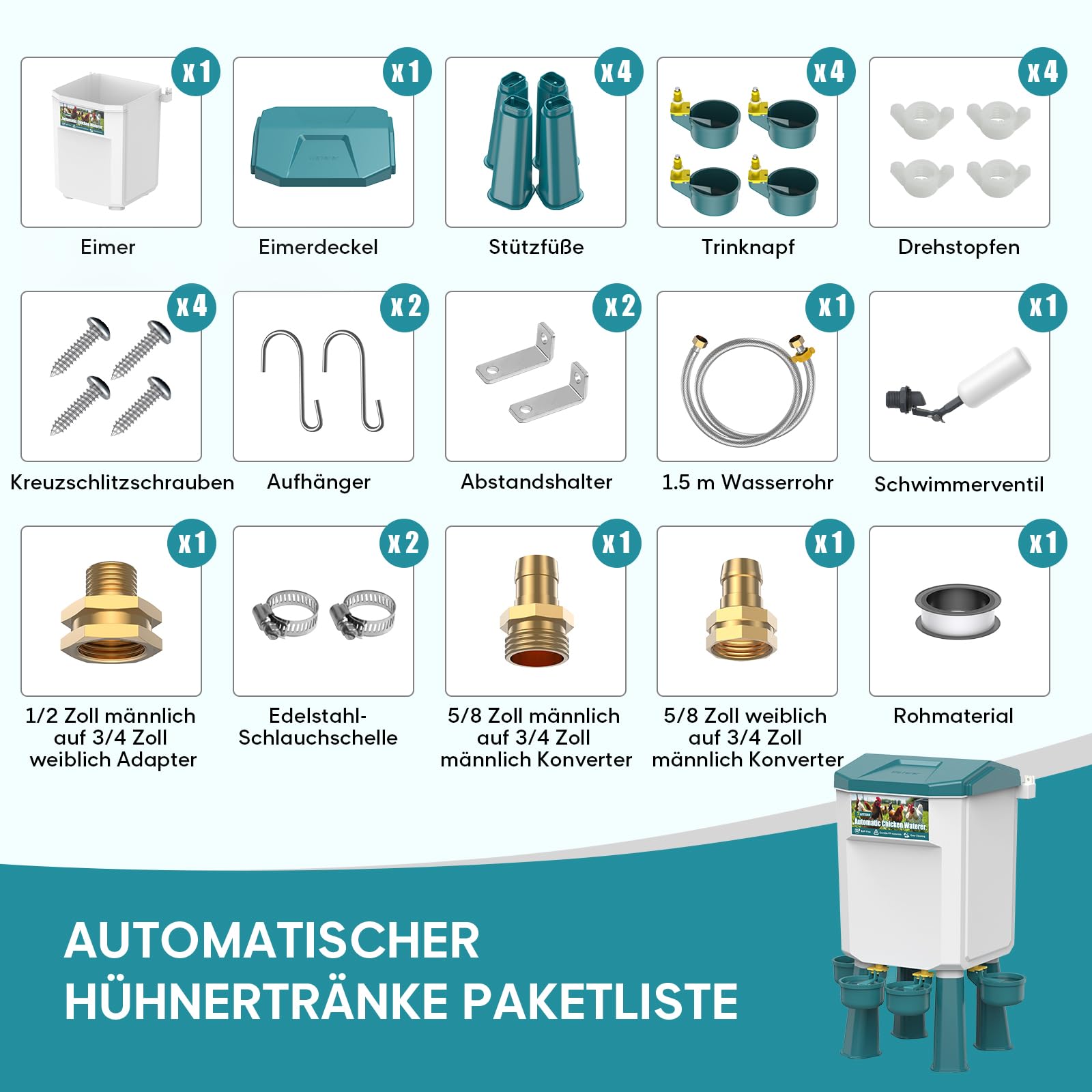 CHAMUTY Automatische Geflügeltränke 7L – Schwimmerventil