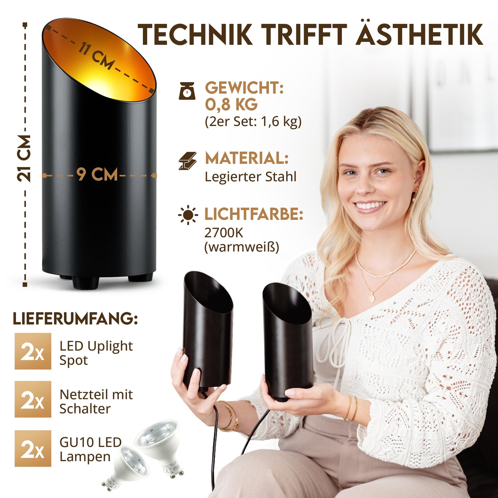 charlique® LED Uplight Spot Bodenstrahler - 2er Set Schwarz GU10