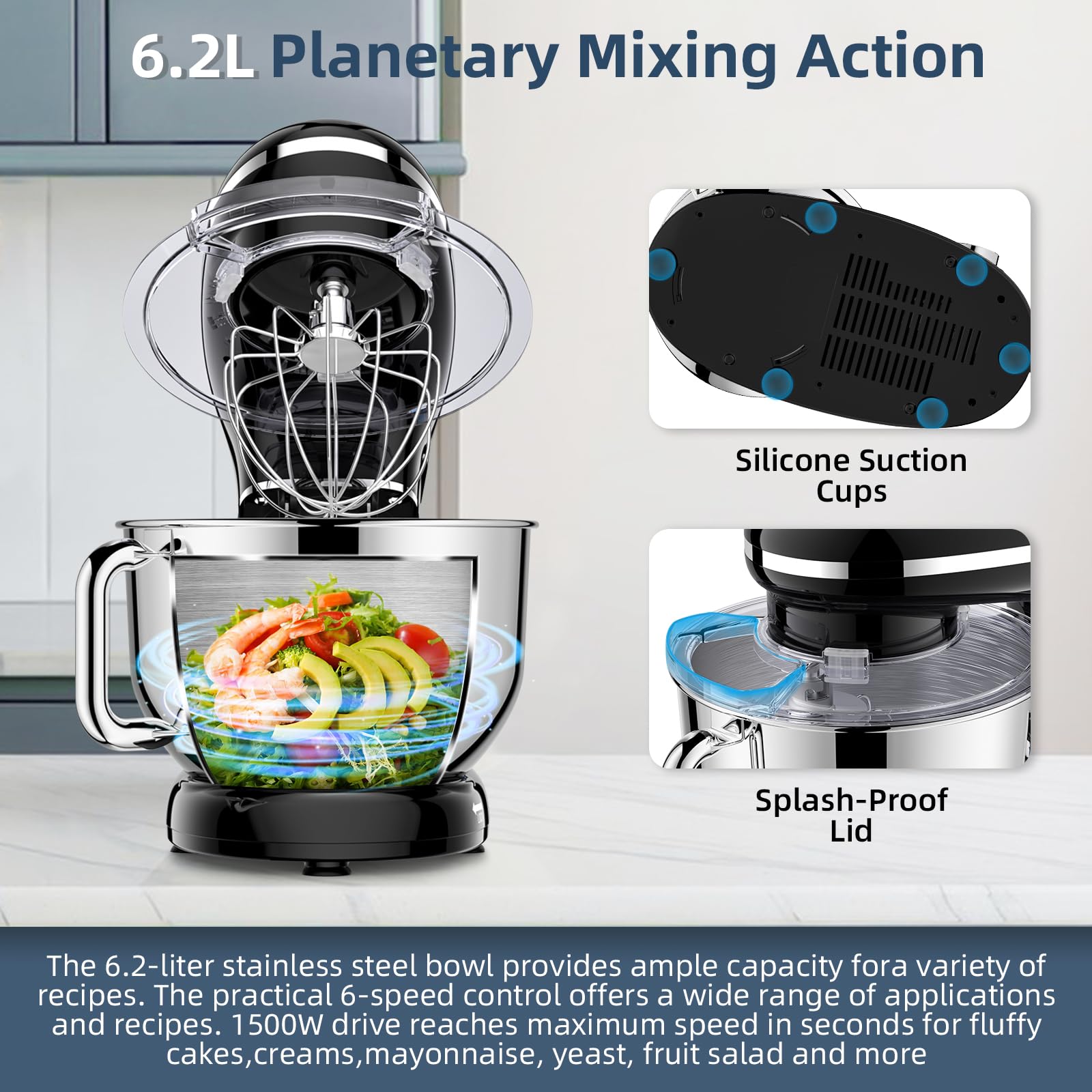 - Grosses Fassungsvermögen: Eine 6.2-Liter-Schüssel aus rostfreiem Edelstahl, ideal für grosse Mengen.