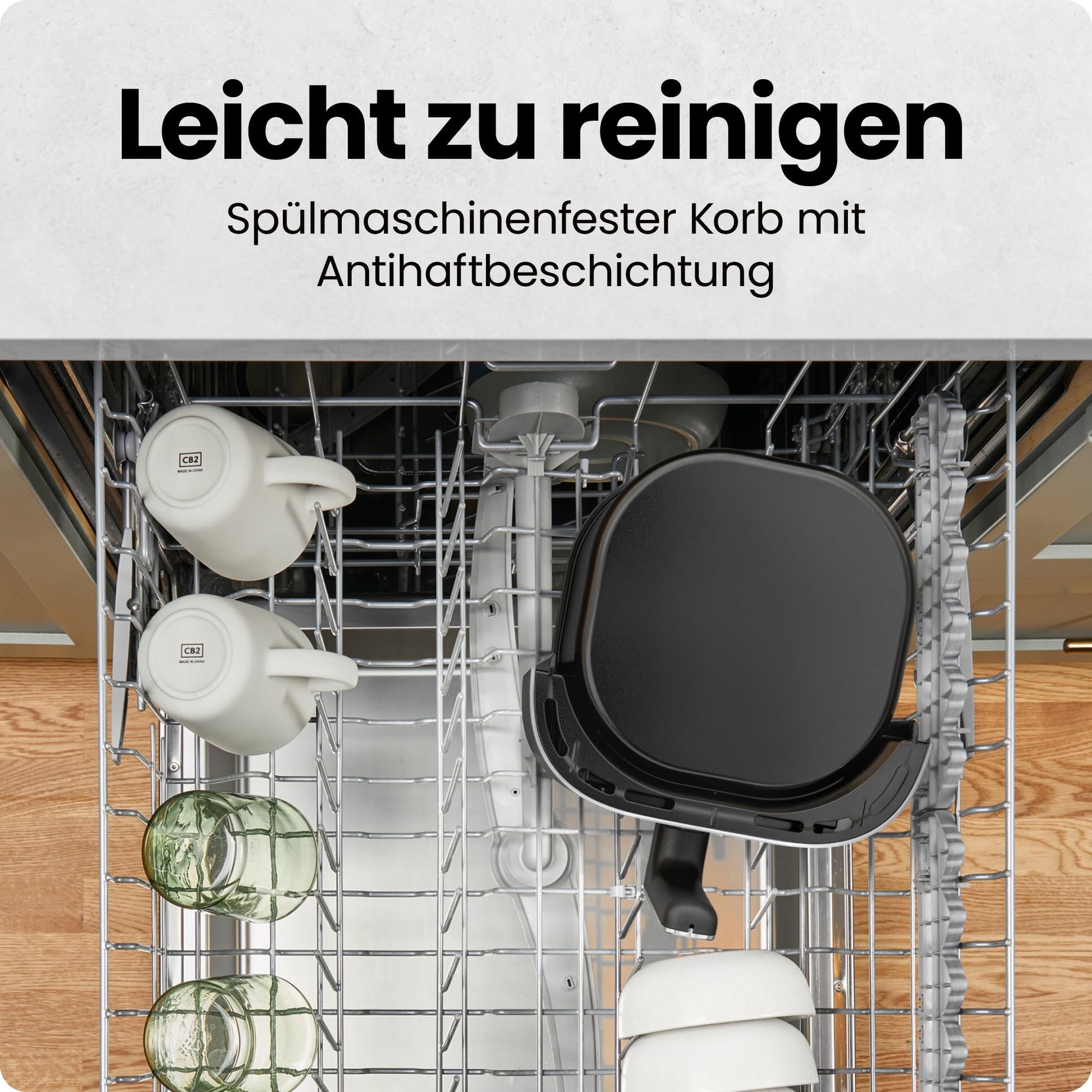 Die Reinigung ist sehr einfach und schnell. Der Garkorb verfügt über eine hochwertige Antihaftbeschichtung, die das Anhaften von Speisen verhindert, und ist zudem komplett spülmaschinenfest für eine mühelose Reinigung.