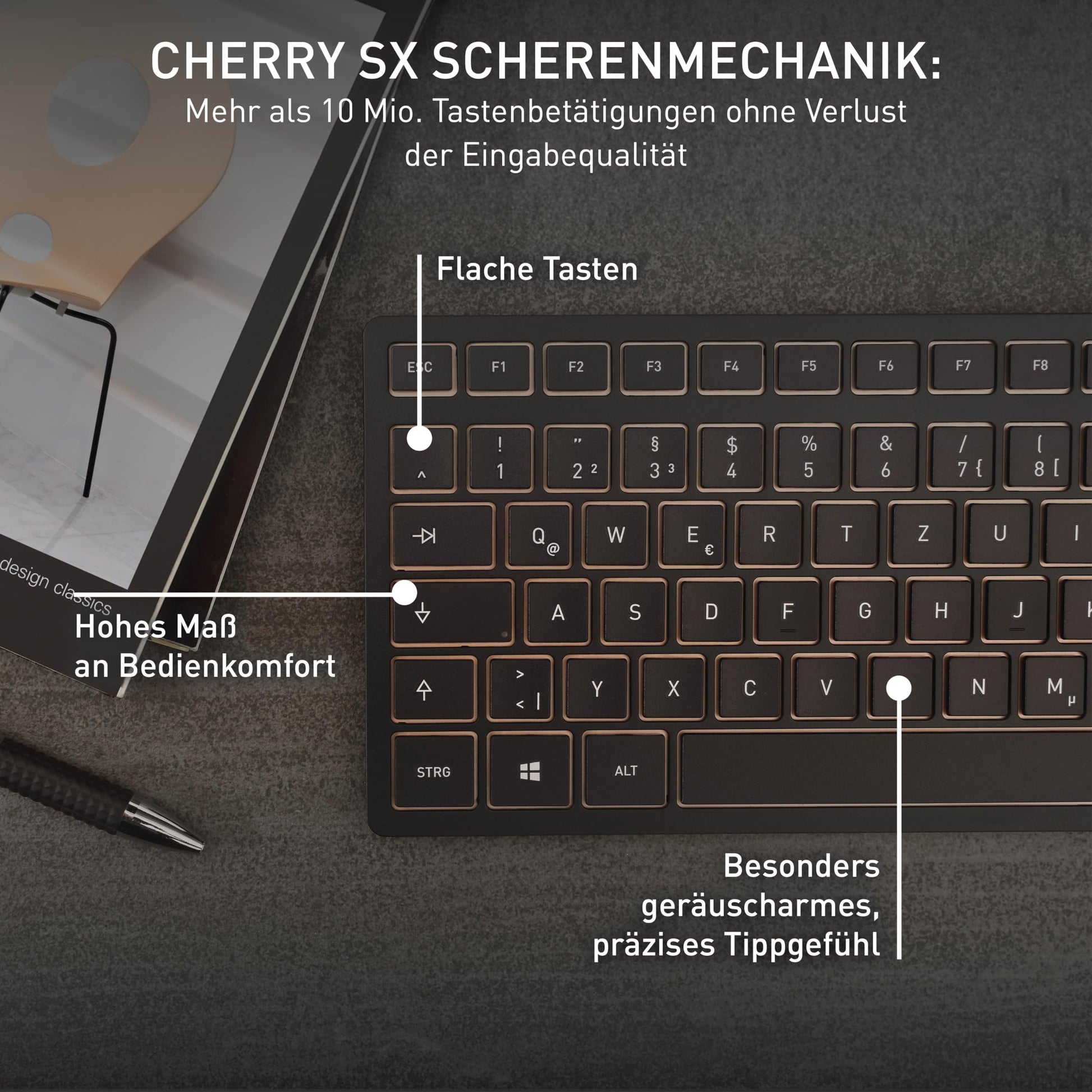 Die Tastatur nutzt die CHERRY SX Scherenmechanik, die ein äusserst präzises und angenehmes Schreibgefühl mit kurzem Tastenhub ermöglicht. Dank des flüsterleisen Tastenanschlags eignet sich das Set perfekt für konzentriertes Arbeiten im Grossraumbüro oder Home-Office, ohne andere zu stören.