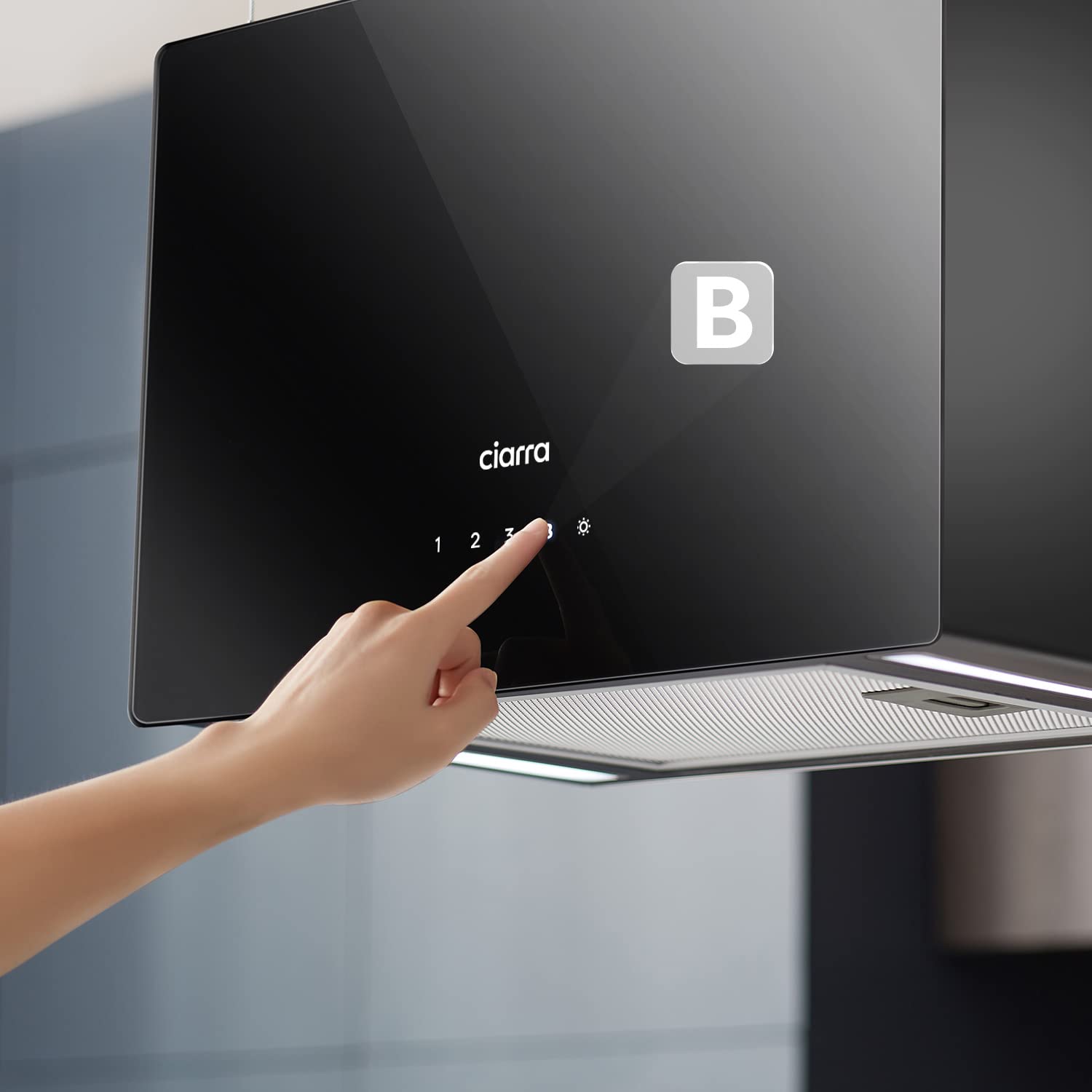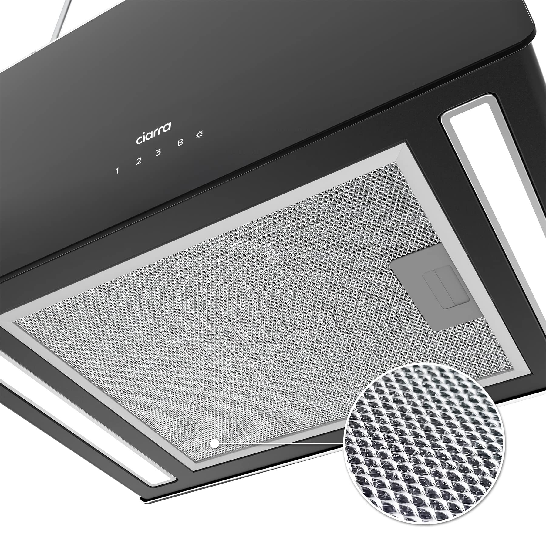 - Effektive Filtration: Ausgestattet mit einem abwaschbaren Aluminium-Fettfilter sowie einem austauschbaren Aktivkohlefilter (Modell CBCF003 im Lieferumfang).