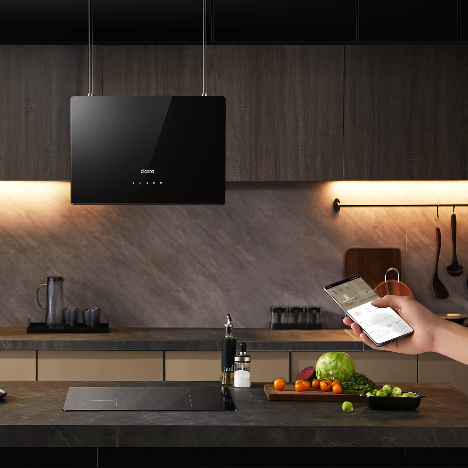 CIARRA CBCB4850 Inselhaube - Umluft 48cm Smart Wi-Fi Schwarz
