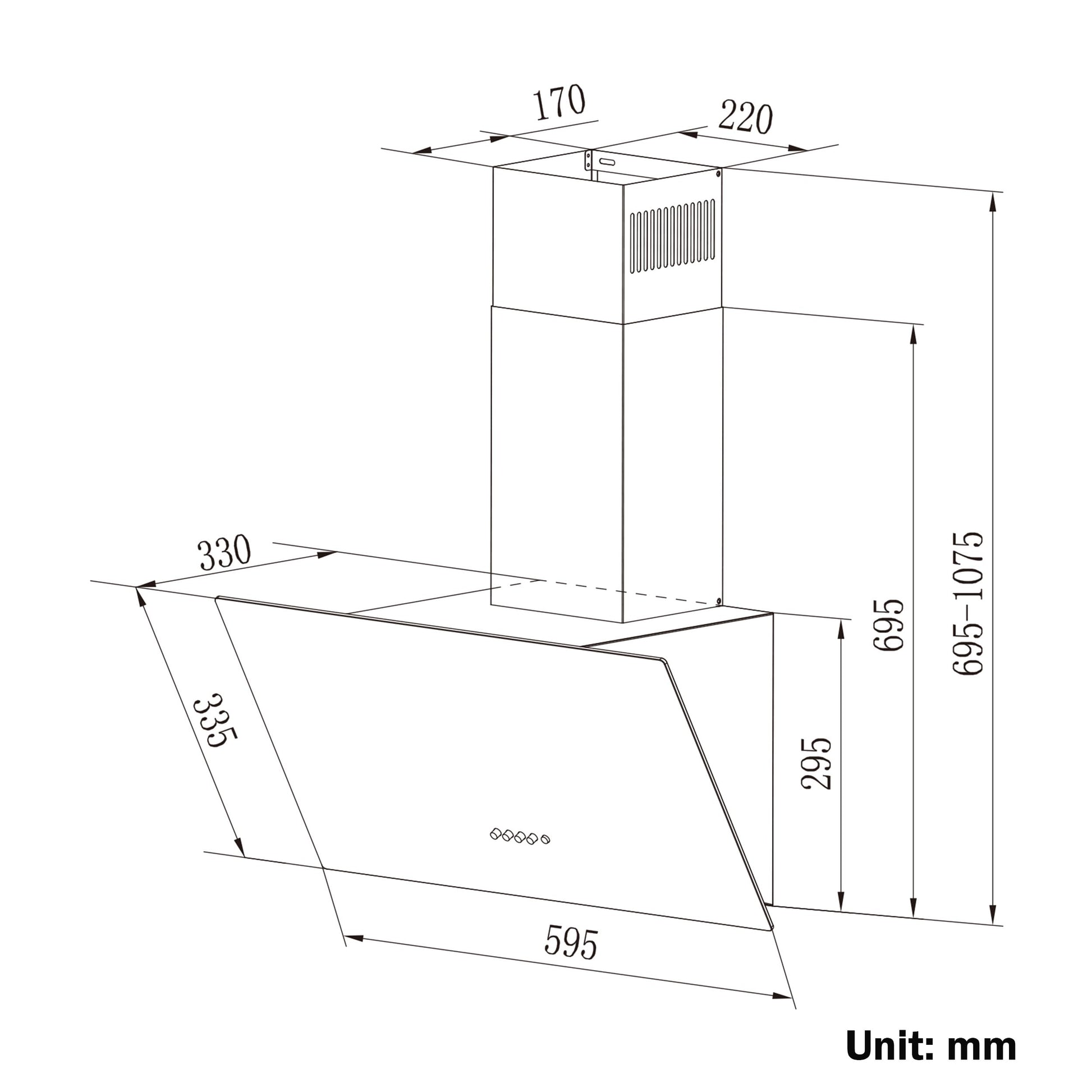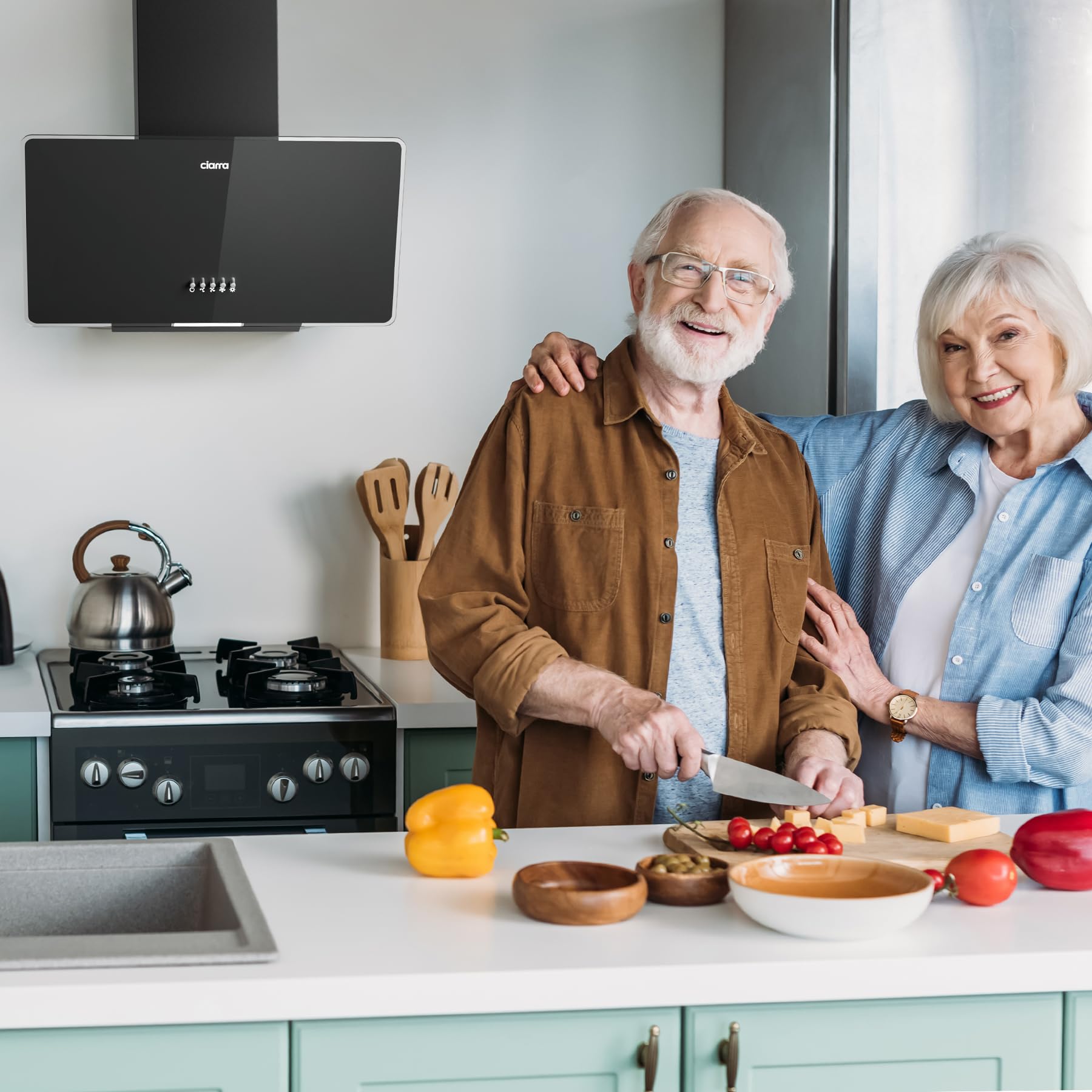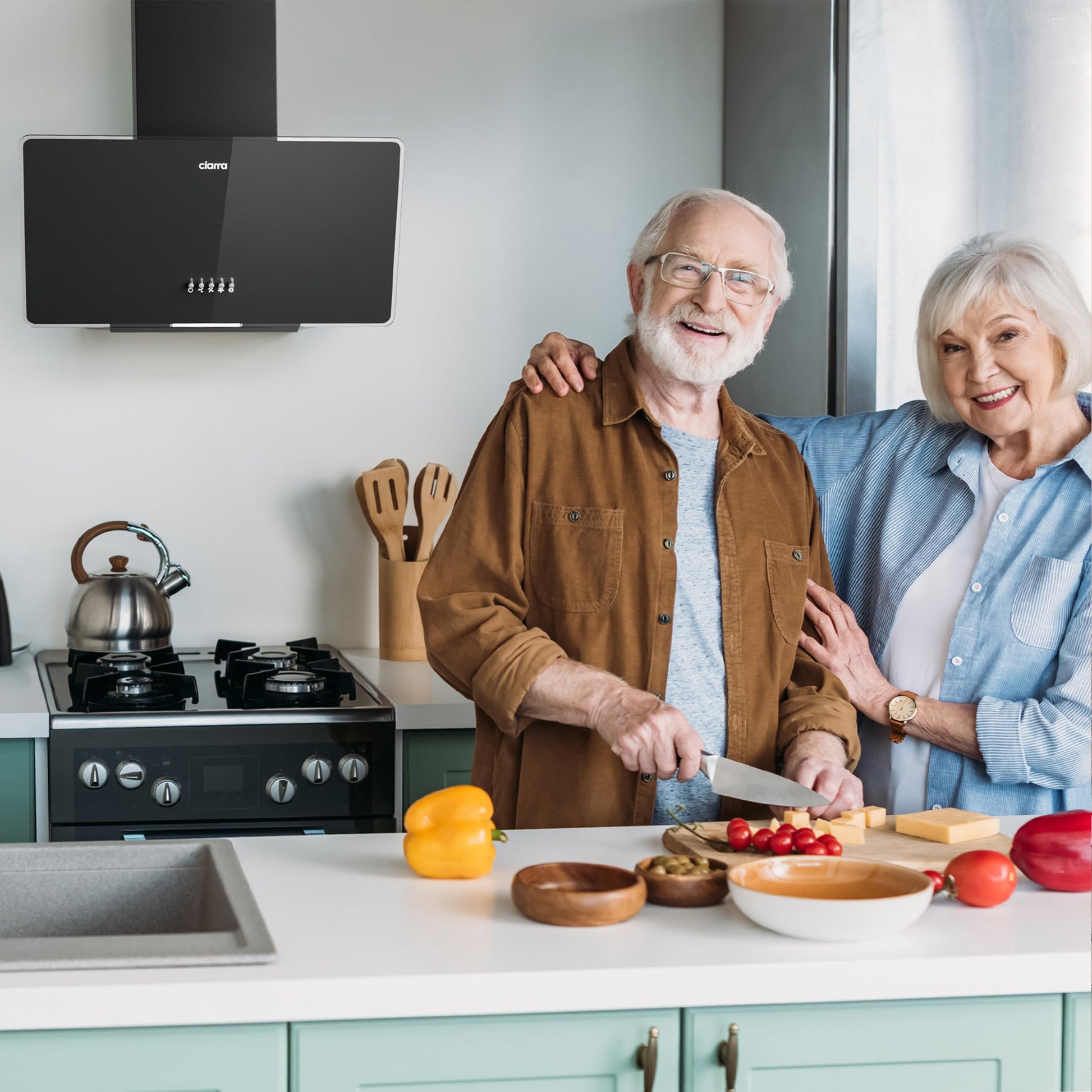 Das kopffreie Schrägdesign bietet maximale Bewegungsfreiheit am Kochfeld, sodass Sie sich nicht den Kopf stossen und Ihre Töpfe stets frei im Blick haben. Neben diesem praktischen Vorteil verleiht das Design mit seiner schwarzen Glasfront Ihrer Küche eine moderne und elegante Optik.