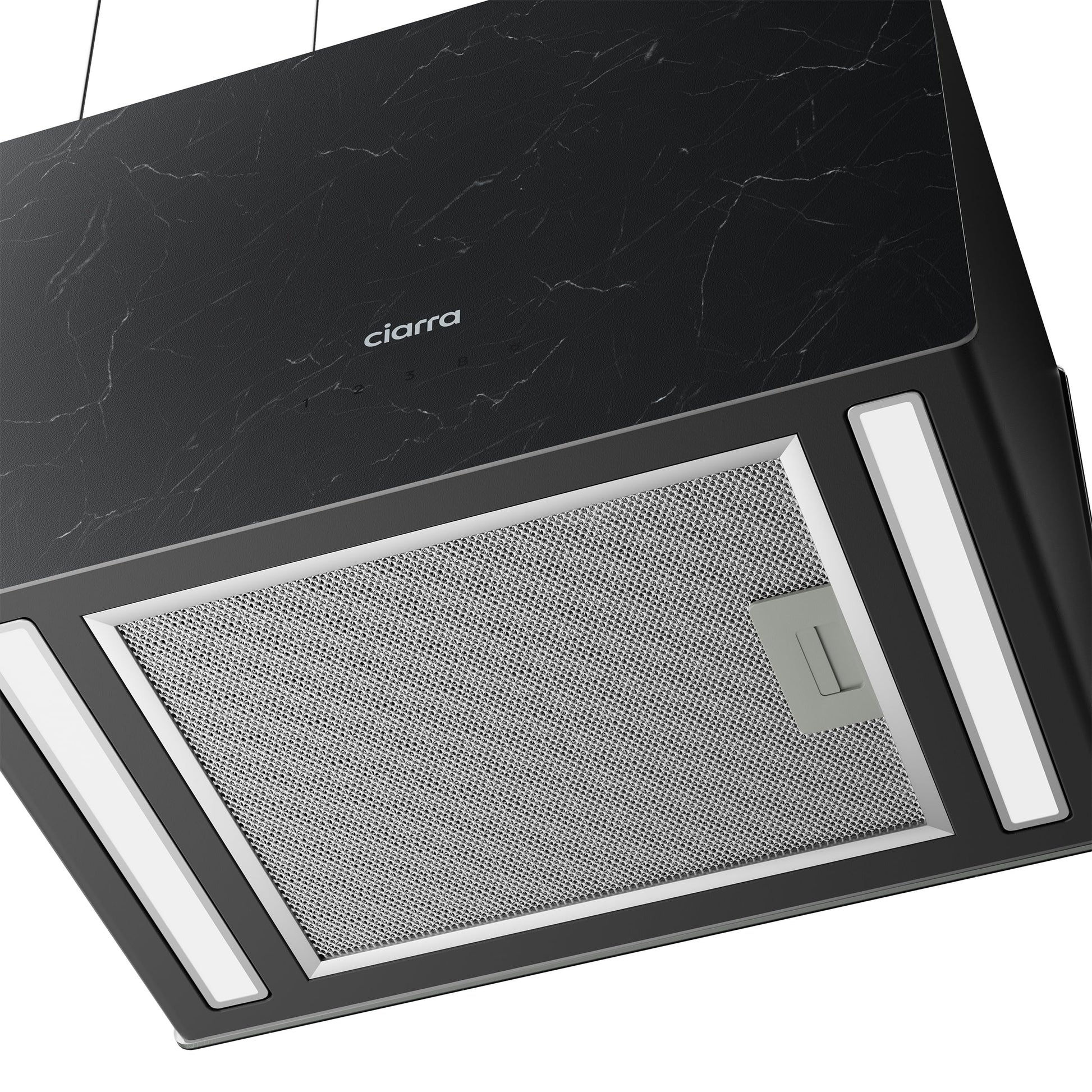 - Effektive Luftreinigung: Ein System aus einem abwaschbaren Aluminium-Fettfilter und einem mitgelieferten Aktivkohlefilter (Modell CBCF003) garantiert stets saubere und klare Küchenluft.