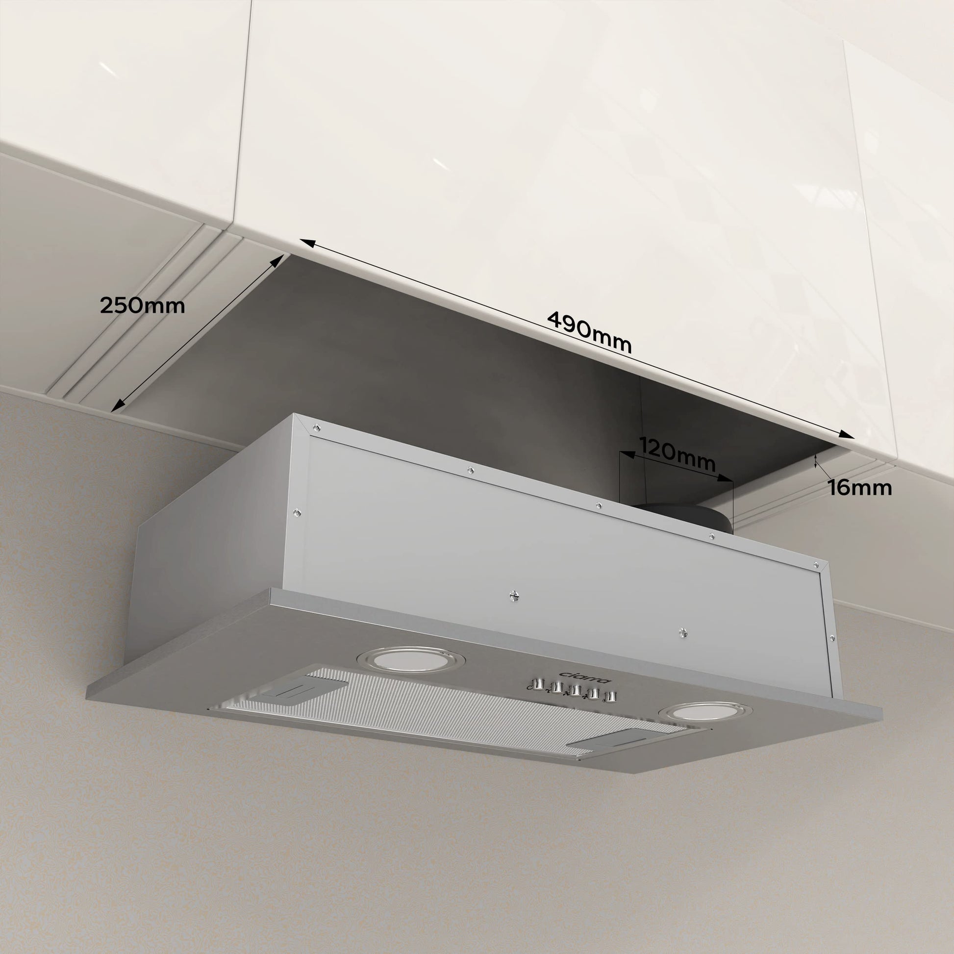Dank der sehr schlanken und integrierbaren Form ist diese Dunstabzugshaube die optimale Wahl für Kochnischen und Küchen mit begrenztem Platzangebot. Sie verschwindet dezent hinter einer Möbelfront und trägt so zu einem aufgeräumten und harmonischen Gesamtbild Ihrer Küche bei.