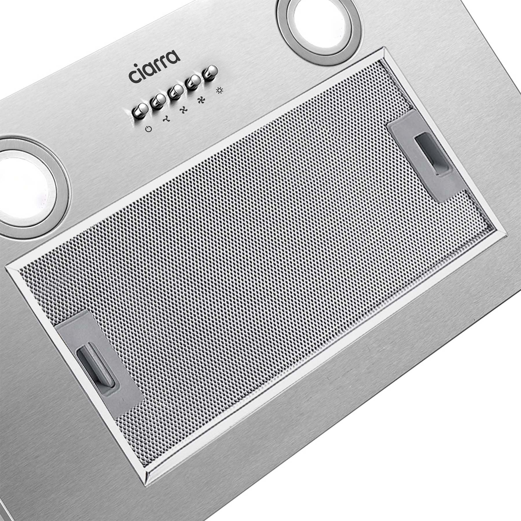 Im Lieferumfang befindet sich der Lüfterbaustein CIARRA CBCS5913A inklusive der waschbaren Aluminium-Fettfilter. Nicht enthalten sind das für den Abluftbetrieb benötigte Abluftrohr (12 cm Anschluss) und der für den Umluftbetrieb erforderliche Aktivkohlefilter (CBCF005). Diese müssen je nach gewählter Betriebsart separat gekauft werden.