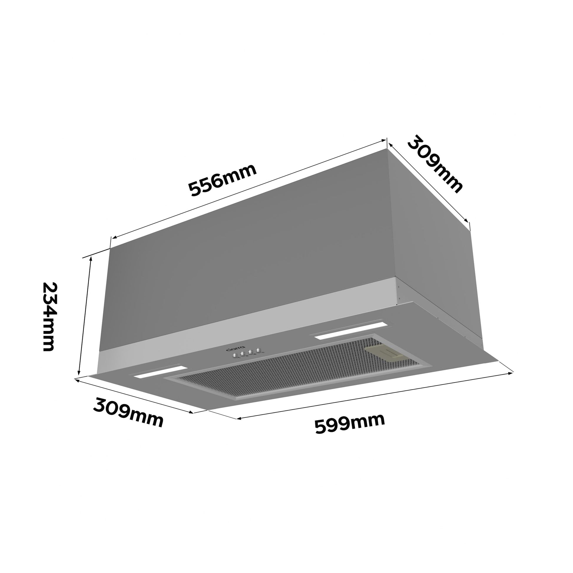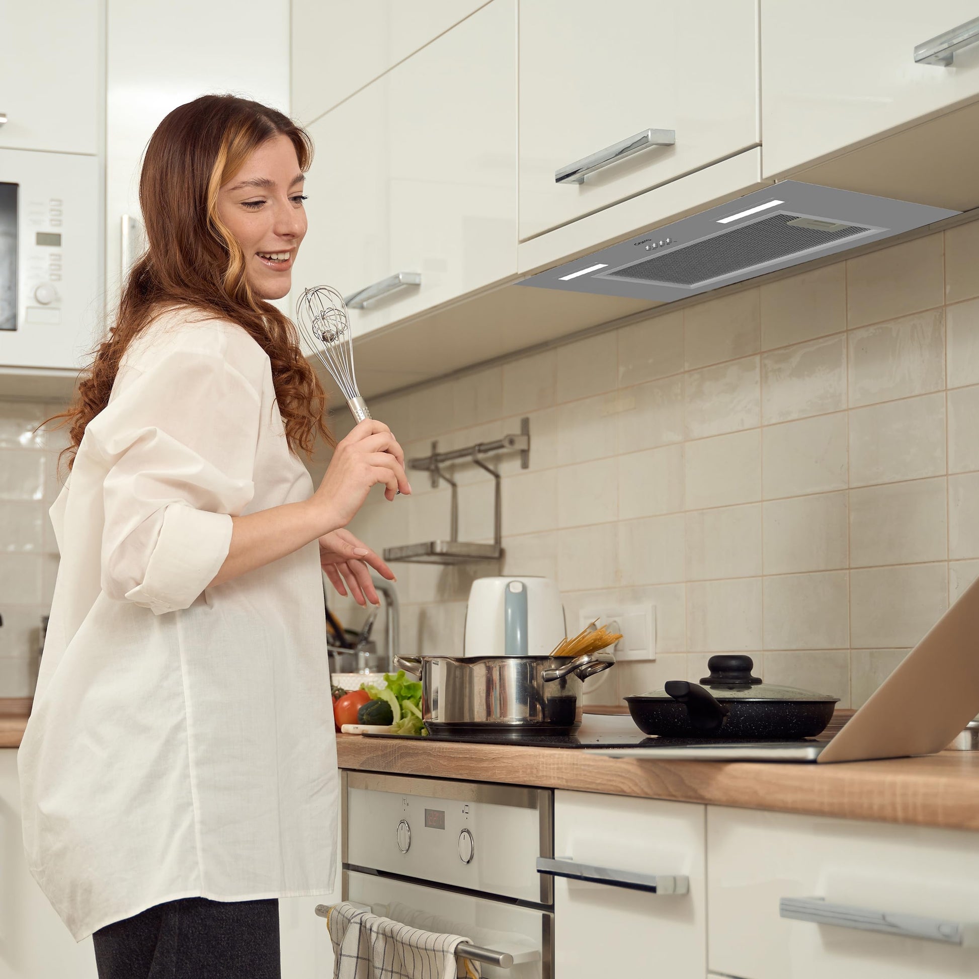 - Nahtlose Integration: Mit einer Breite von 60 cm kann dieser Lüfterbaustein komplett verdeckt hinter einer Schranktür montiert werden, was ein einheitliches und glattes Küchendesign ermöglicht.