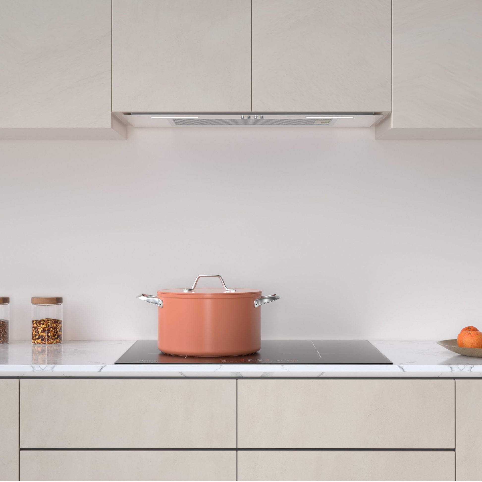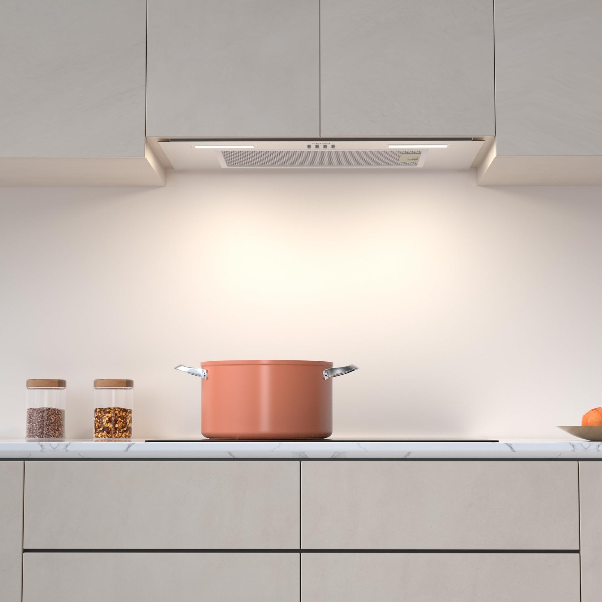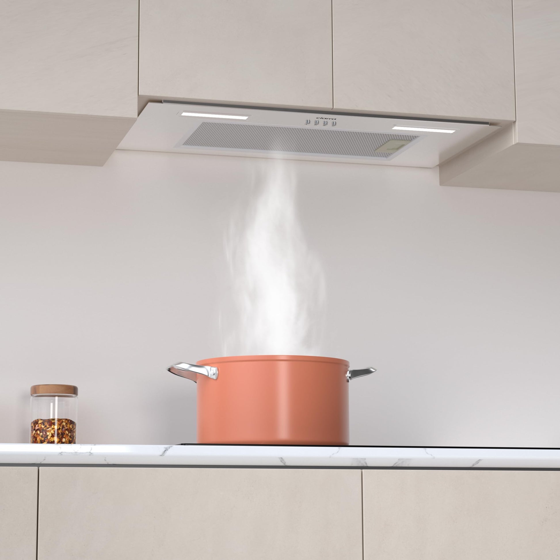 - Drei Leistungsstufen: Passen Sie die Abzugsleistung flexibel an Ihre Kochvorgänge an – von sanftem Simmern bis hin zum kräftigen Anbraten.