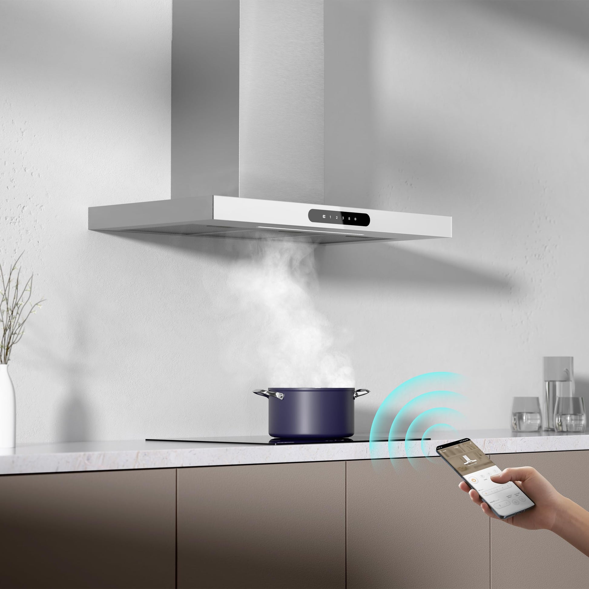 Geniessen Sie stets frische Luft beim Kochen. Die starke Absaugleistung beseitigt Kochdünste und Gerüche im Handumdrehen, während der flüsterleise Betrieb die Atmosphäre in Ihrer Küche ungestört lässt. Die Bedienung wird durch das elegante Touch-Panel und die smarte App-Steuerung zum Kinderspiel, mit der Sie mühelos zwischen vier Leistungsstufen inklusive Boost-Funktion wechseln können.