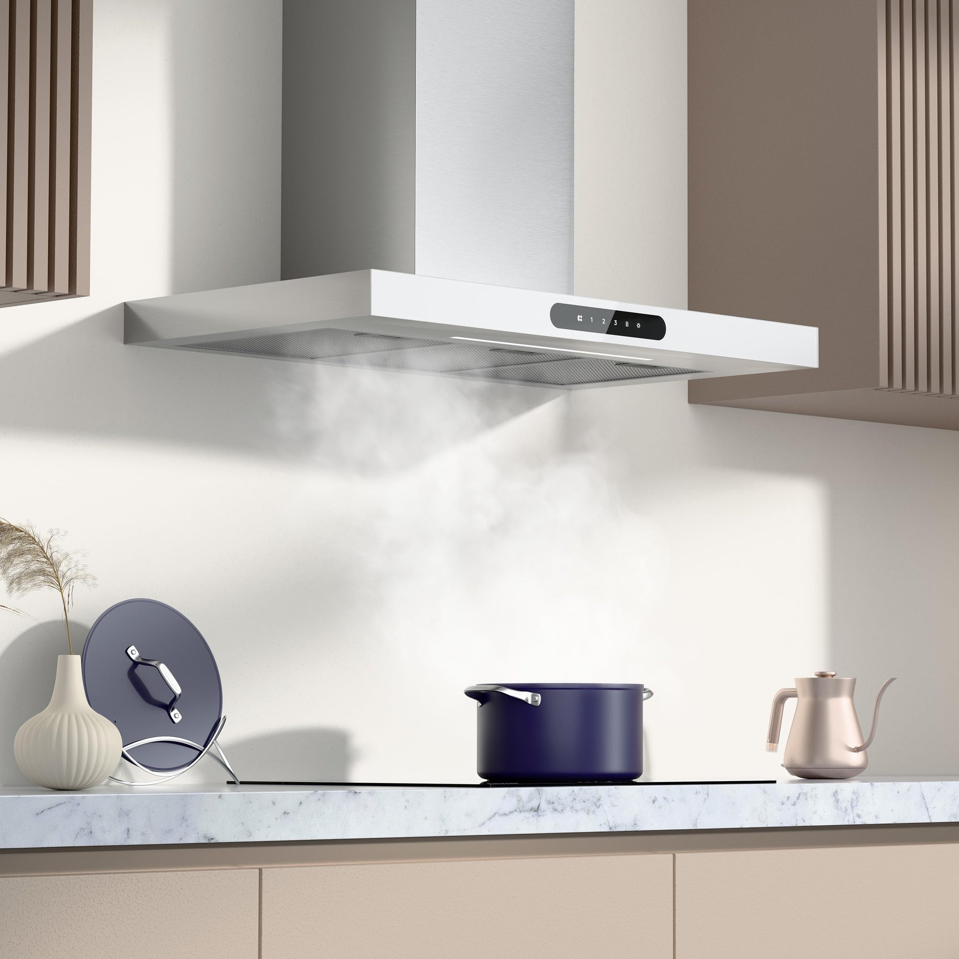 - Hochwertige Materialien: Gefertigt aus korrosionsbeständigem Edelstahl und edlem weissem Glas für Langlebigkeit und einfache Reinigung.