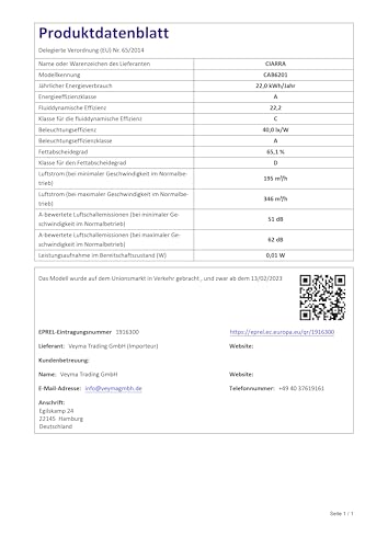 Absolut. Mit der Energieeffizienzklasse A und einem sehr geringen Jahresverbrauch von nur 22 kWh ist die Haube äußerst sparsam. Im Vergleich zu älteren Geräten können Sie Ihren Stromverbrauch um bis zu 40 % senken, was Umwelt und Geldbeutel schont.