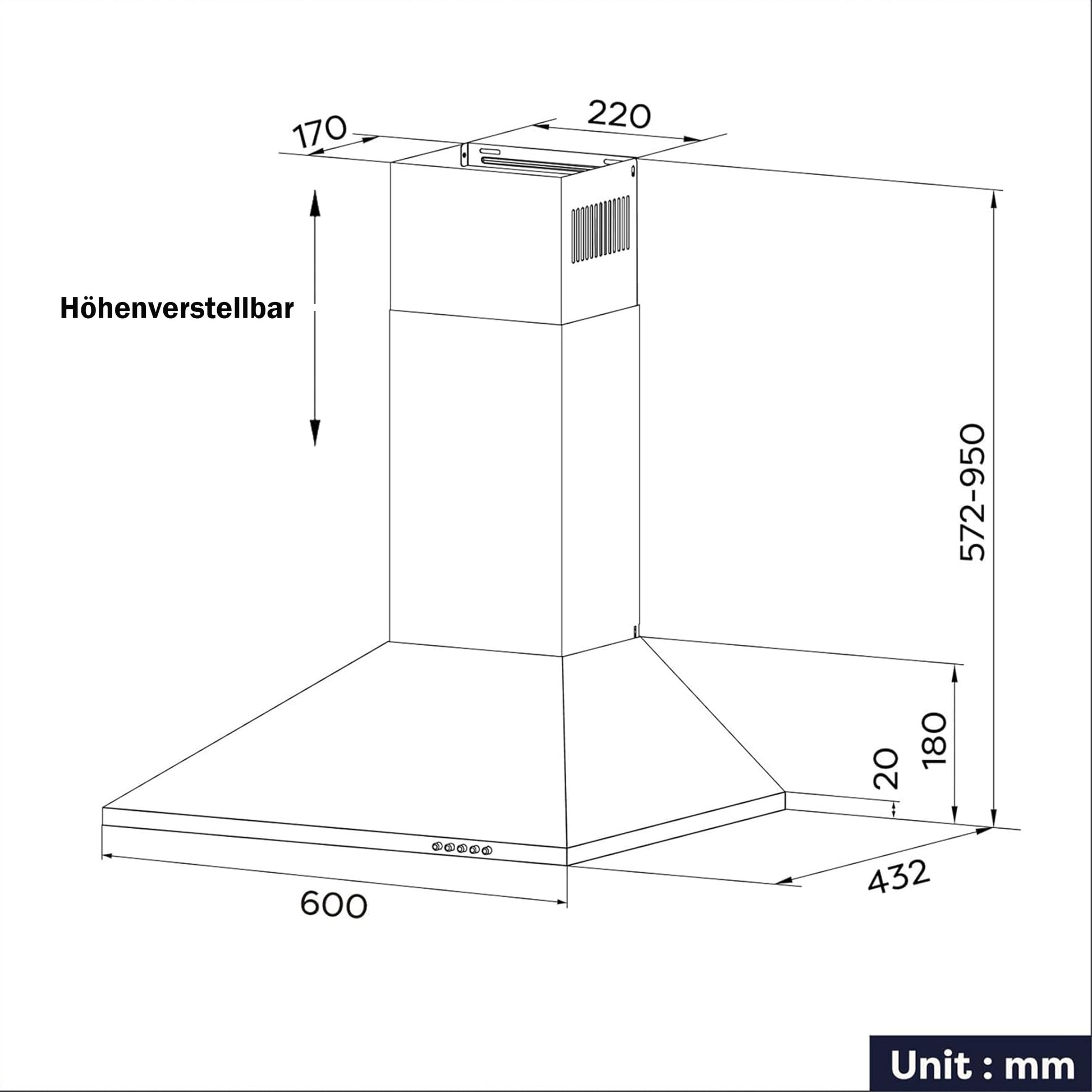 - Praktisches Design: Mit einer Breite von 60 cm und dem modernen, platzsparenden Aufbau passt die Haube perfekt in die meisten Standardküchen.