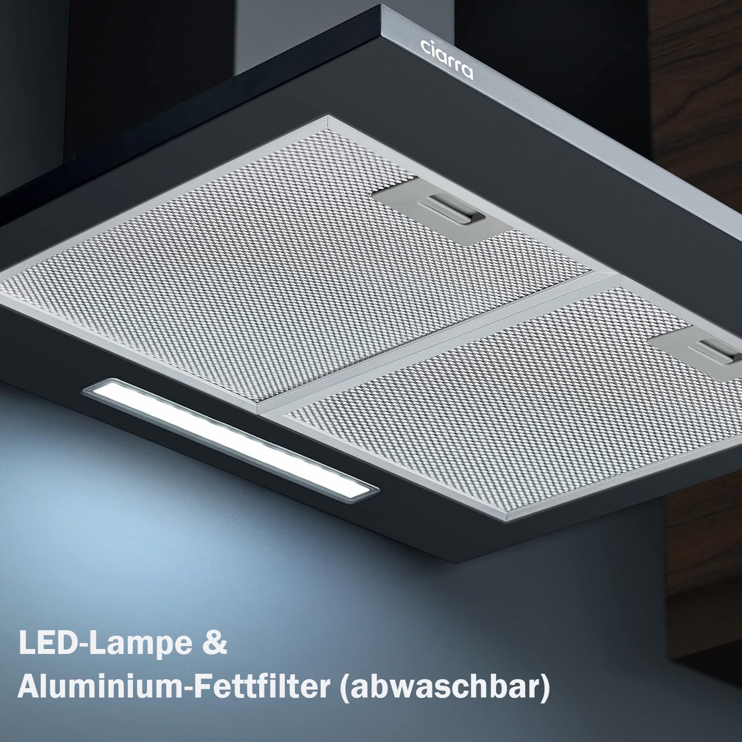 Die CIARRA Dunstabzugshaube im eleganten Pyramiden-Design ist die ideale Lösung, um Ihre Küche zuverlässig von Dampf und Gerüchen zu befreien. Sie verbindet eine starke Leistung mit modernem Stil und hoher Energieeffizienz.