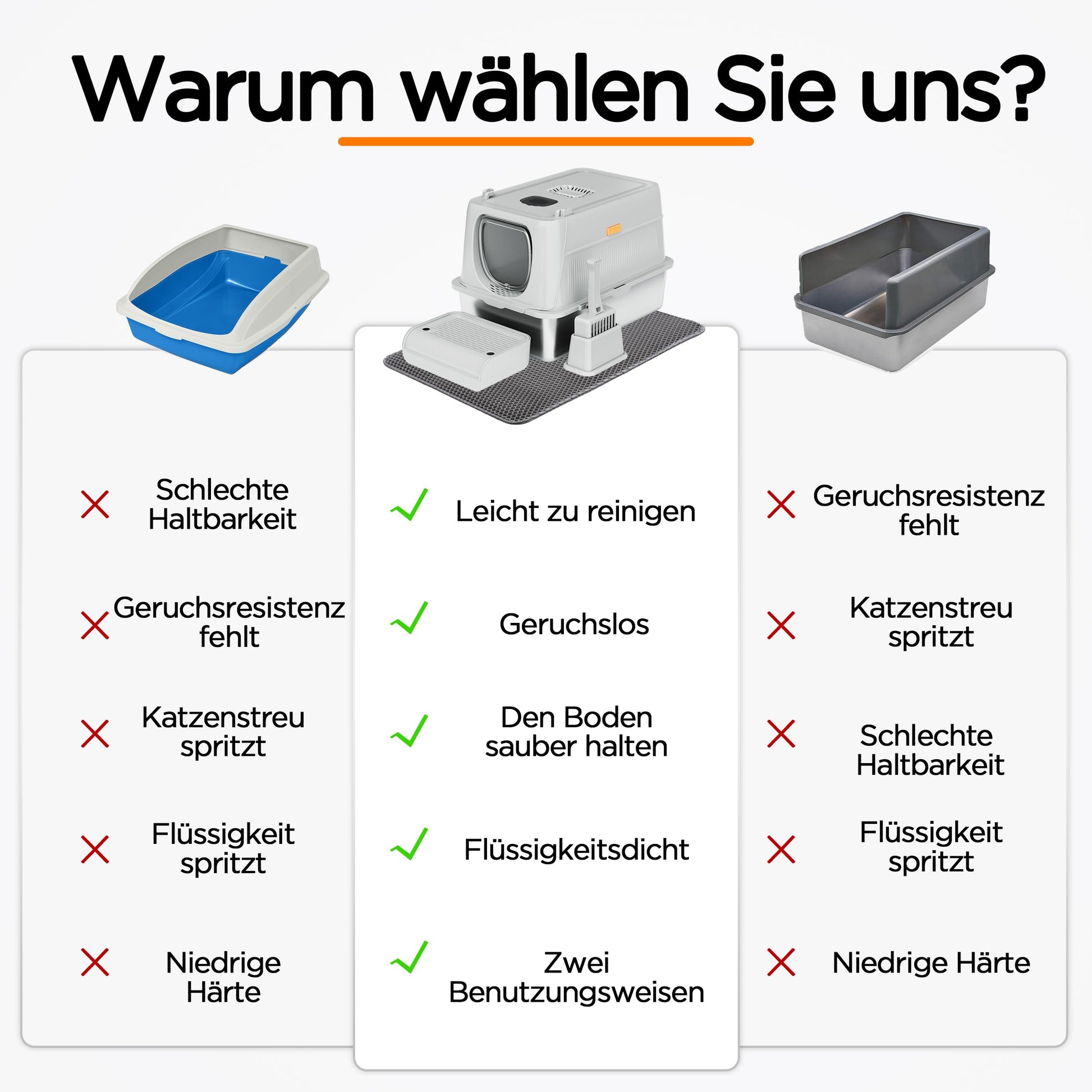 - Komplettes Set: Im Lieferumfang sind eine passende Doppelschicht-Matte zur Reduzierung von Streu in der Wohnung sowie eine Streuschaufel enthalten.