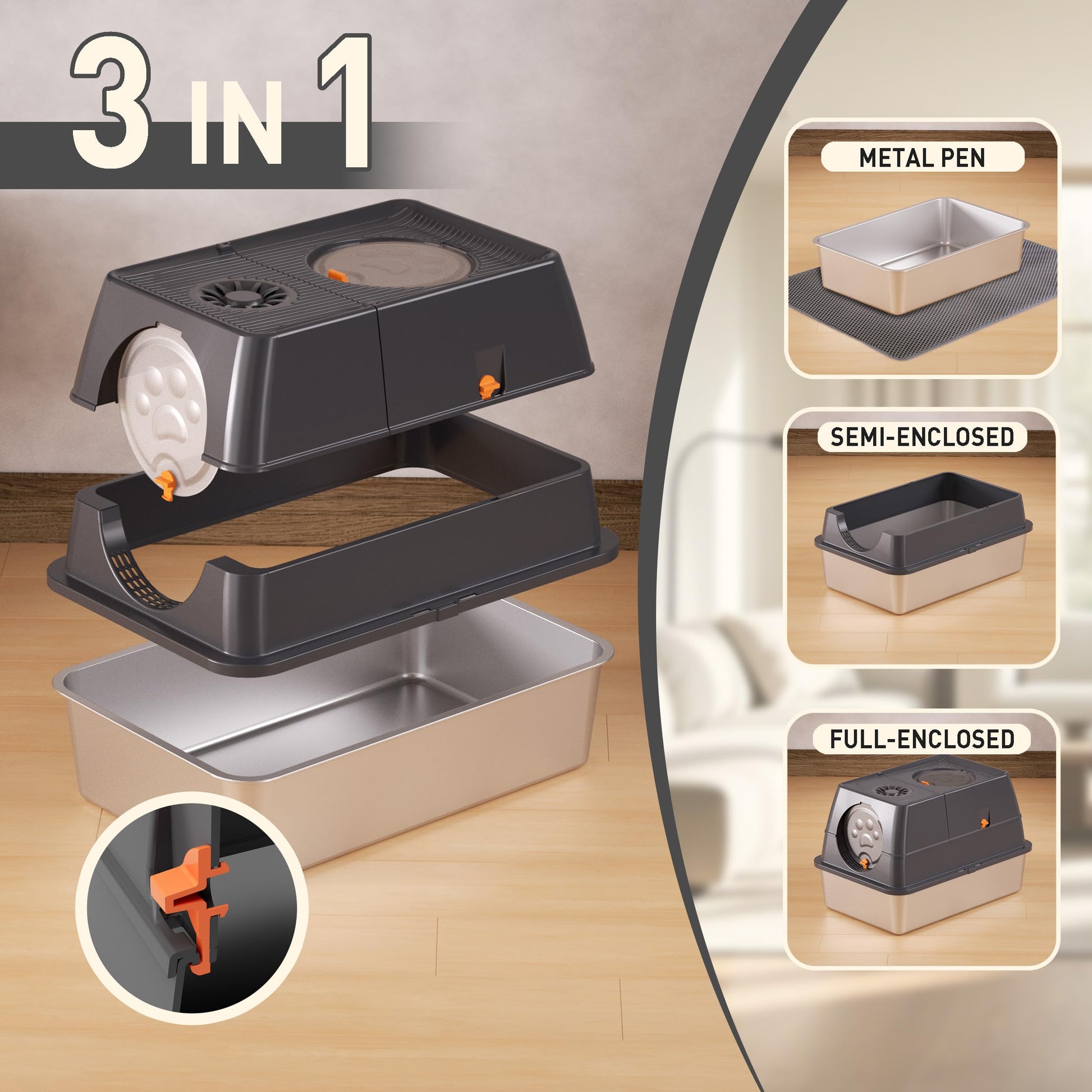 - Modulares Design: Das Katzenklo kann vollständig geschlossen für maximale Privatsphäre oder halb offen genutzt werden, je nach Vorliebe Ihrer Katze.