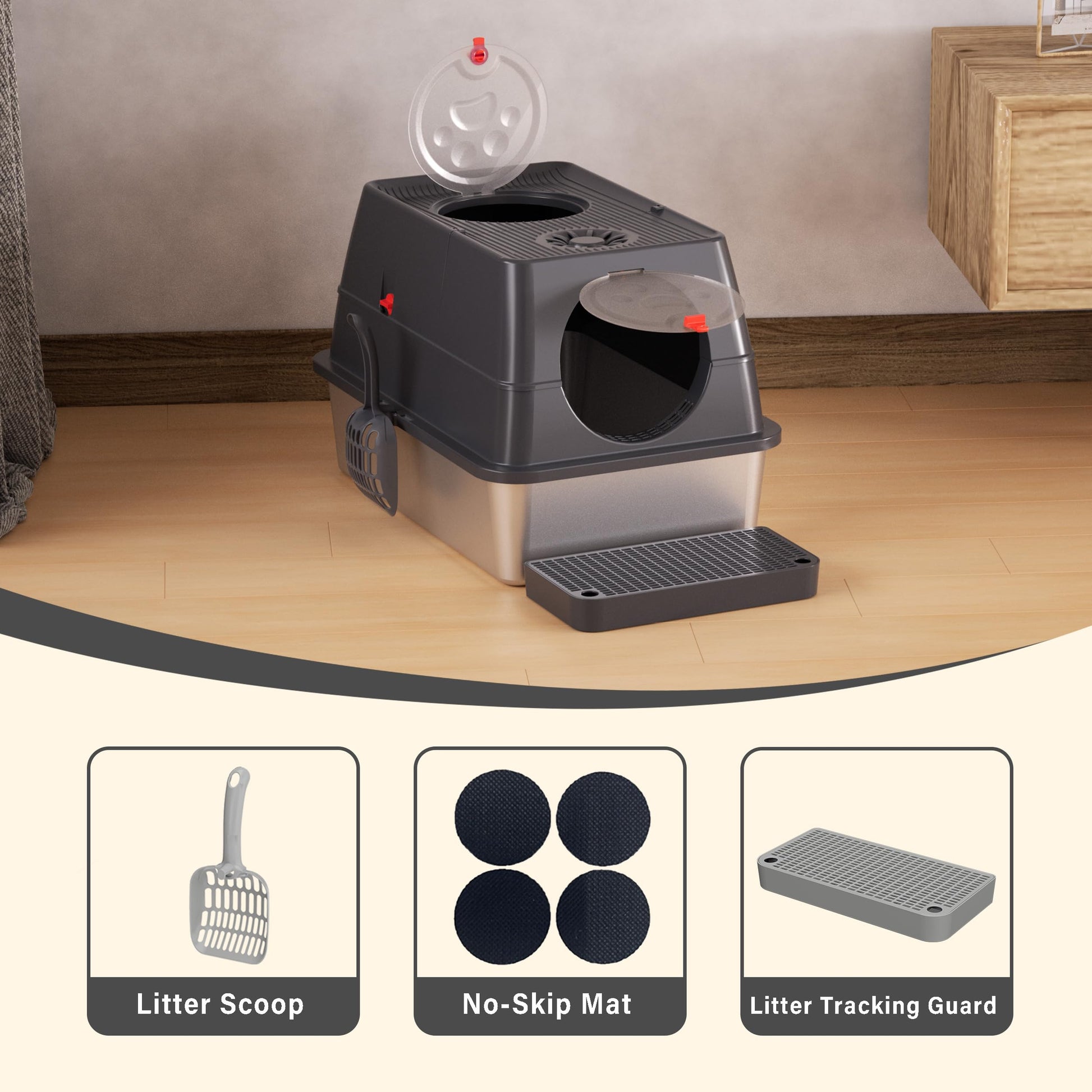 Citylife Katzenklo XL Edelstahl mit Deckel – Dunkelgrau