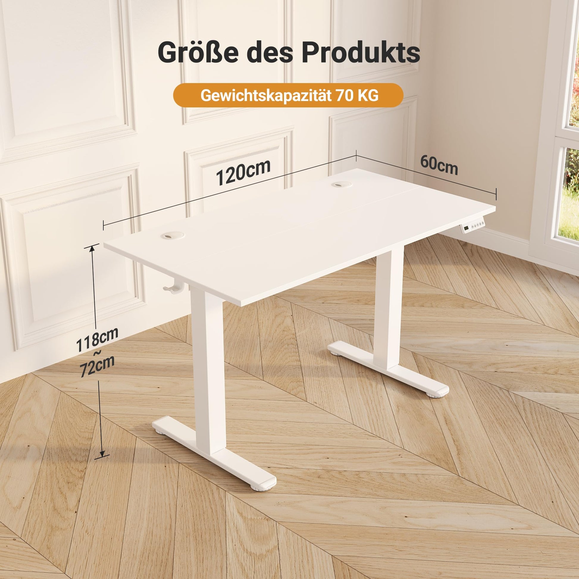 Claiks Elektrischer Steh-Sitz Schreibtisch 120x60cm Weiss