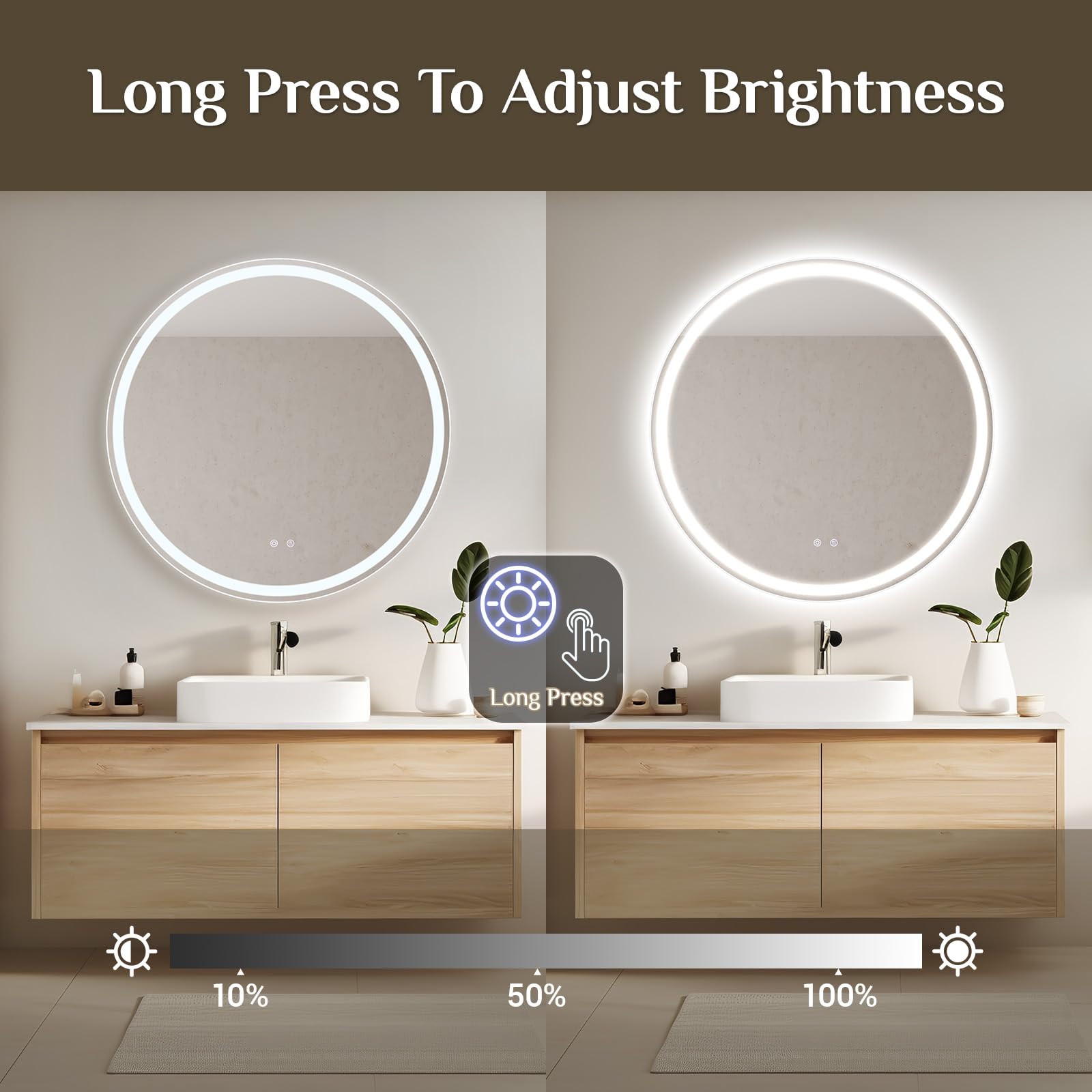 Verleihen Sie Ihrem Badezimmer mit diesem eleganten, runden LED-Spiegel einen Hauch von modernem Luxus und perfekter Ausleuchtung. Er kombiniert stilvolles Design mit intelligenter Funktionalität für Ihren täglichen Komfort.