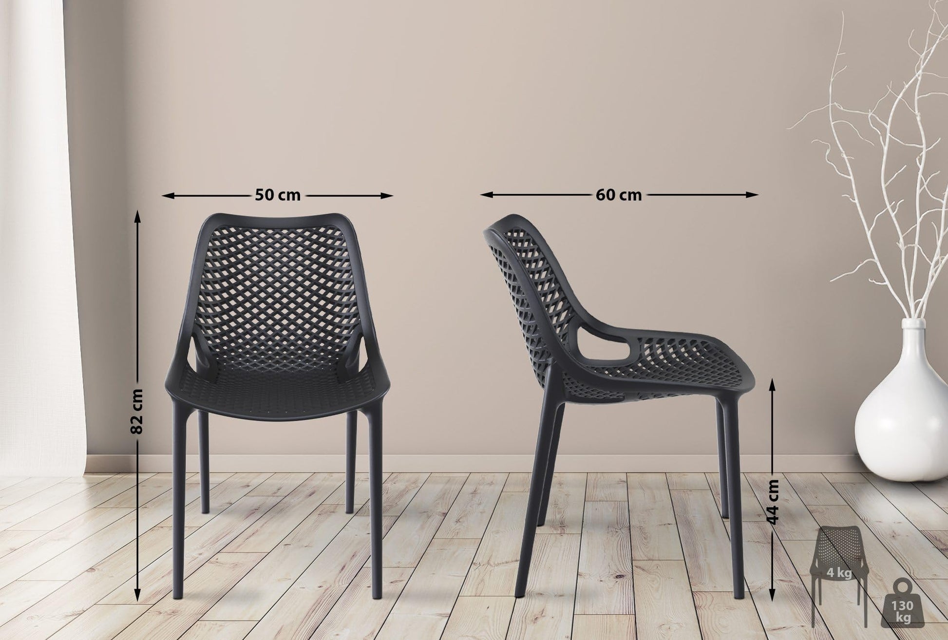 Der Bistrostuhl Air ist ein echter Alleskönner und bereichert mit seinem modernen Design sowohl Ihren Garten als auch Ihre Wohnräume. Gefertigt aus einem einzigen Guss, vereint er Stabilität mit einer eleganten Optik.