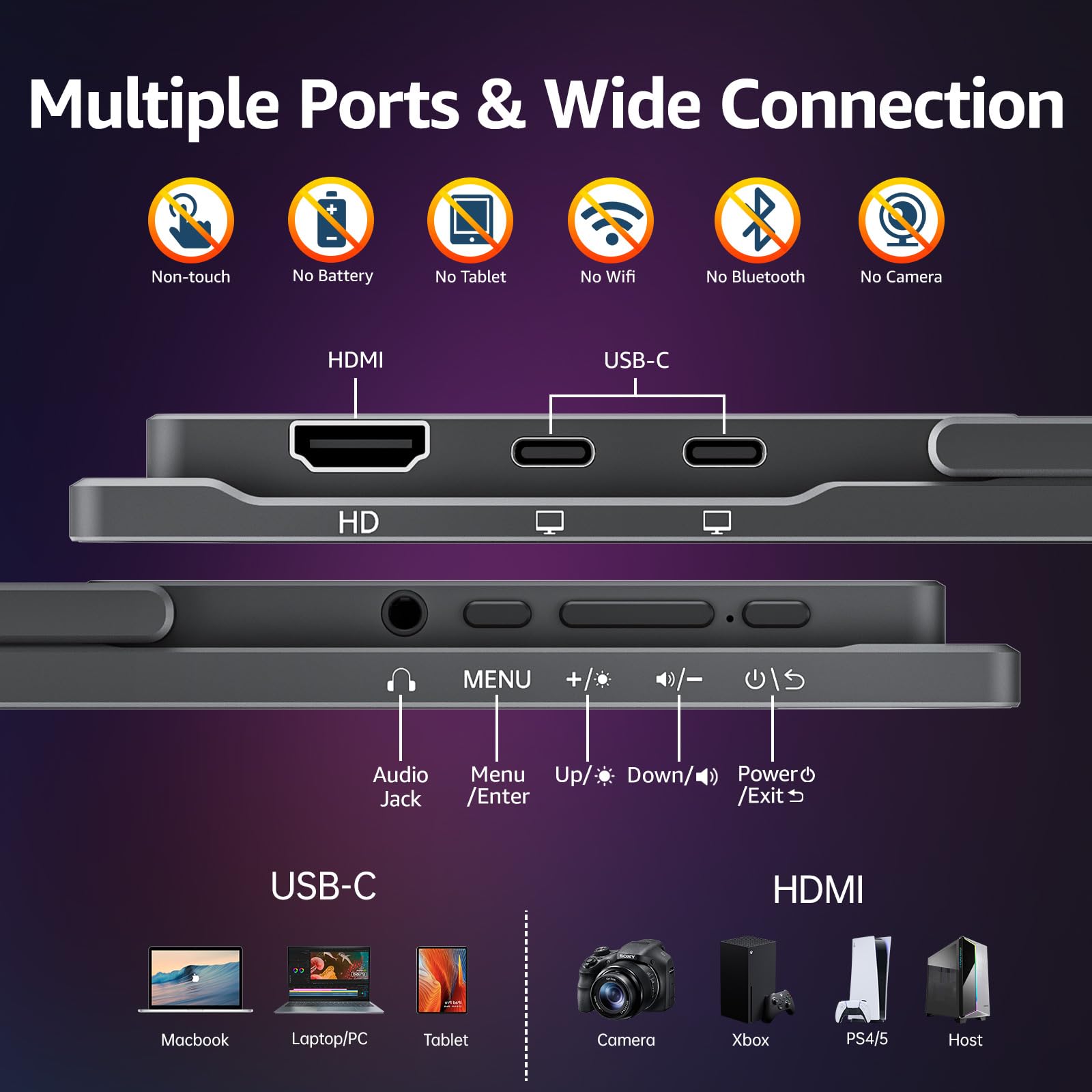 Einfach anschliessen und loslegen: Dank der Plug-and-Play-Funktionalität ist der Monitor sofort einsatzbereit. Er verbindet sich unkompliziert über ein einziges USB-C-Kabel mit kompatiblen Geräten wie MacBooks, Laptops oder Surface-Tablets (Thunderbolt 3/4 wird unterstützt). Die zusätzlichen Anschlüsse gewährleisten eine breite Kompatibilität mit PCs, Spielkonsolen wie Xbox und PS4/5 sowie weiteren Geräten.