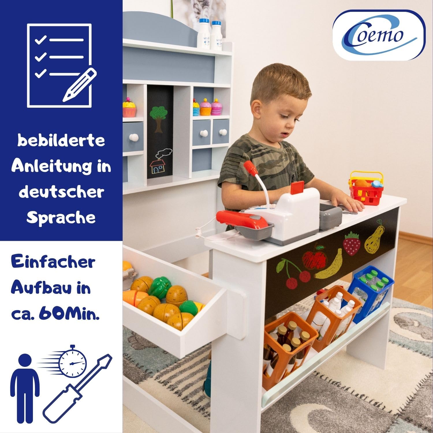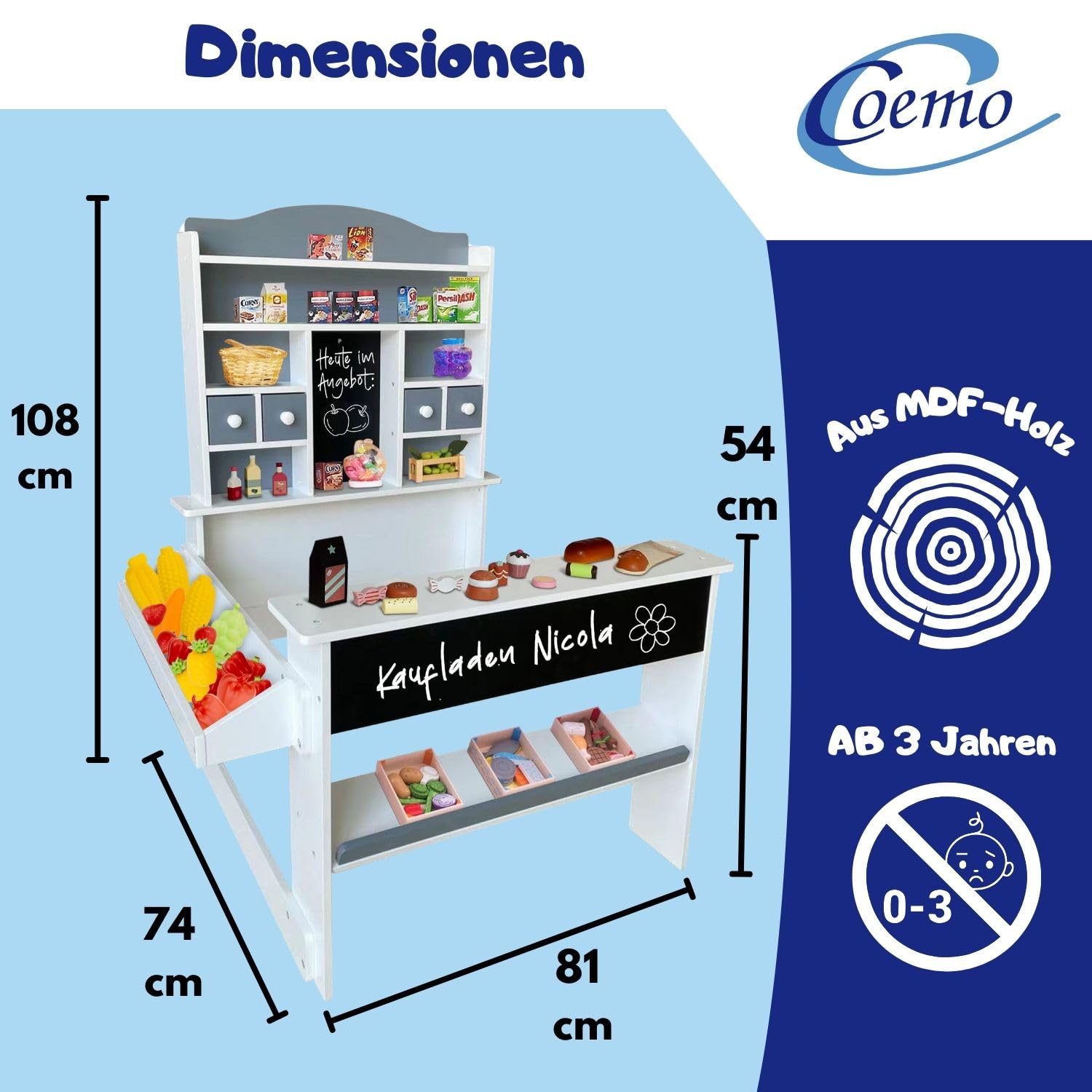 Coemo Kaufladen Nicola Kinder Kaufmannsladen aus Holz - Grau
