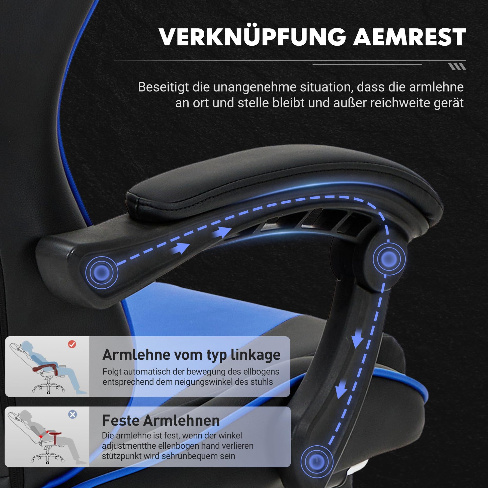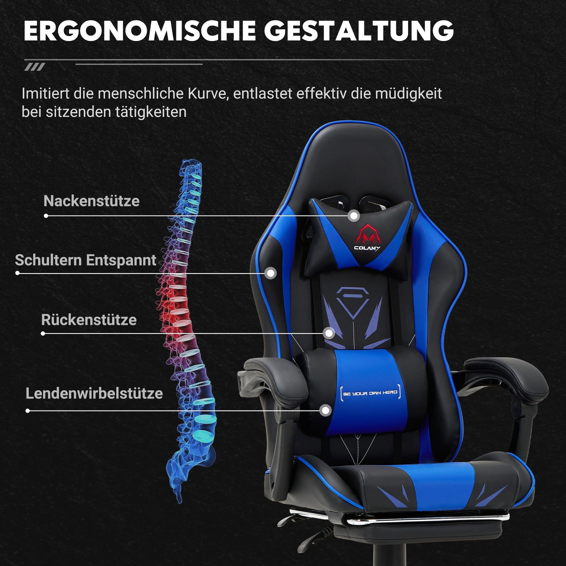 COLAMY Gaming Stuhl Ergonomisch mit Fussstütze - Blau
