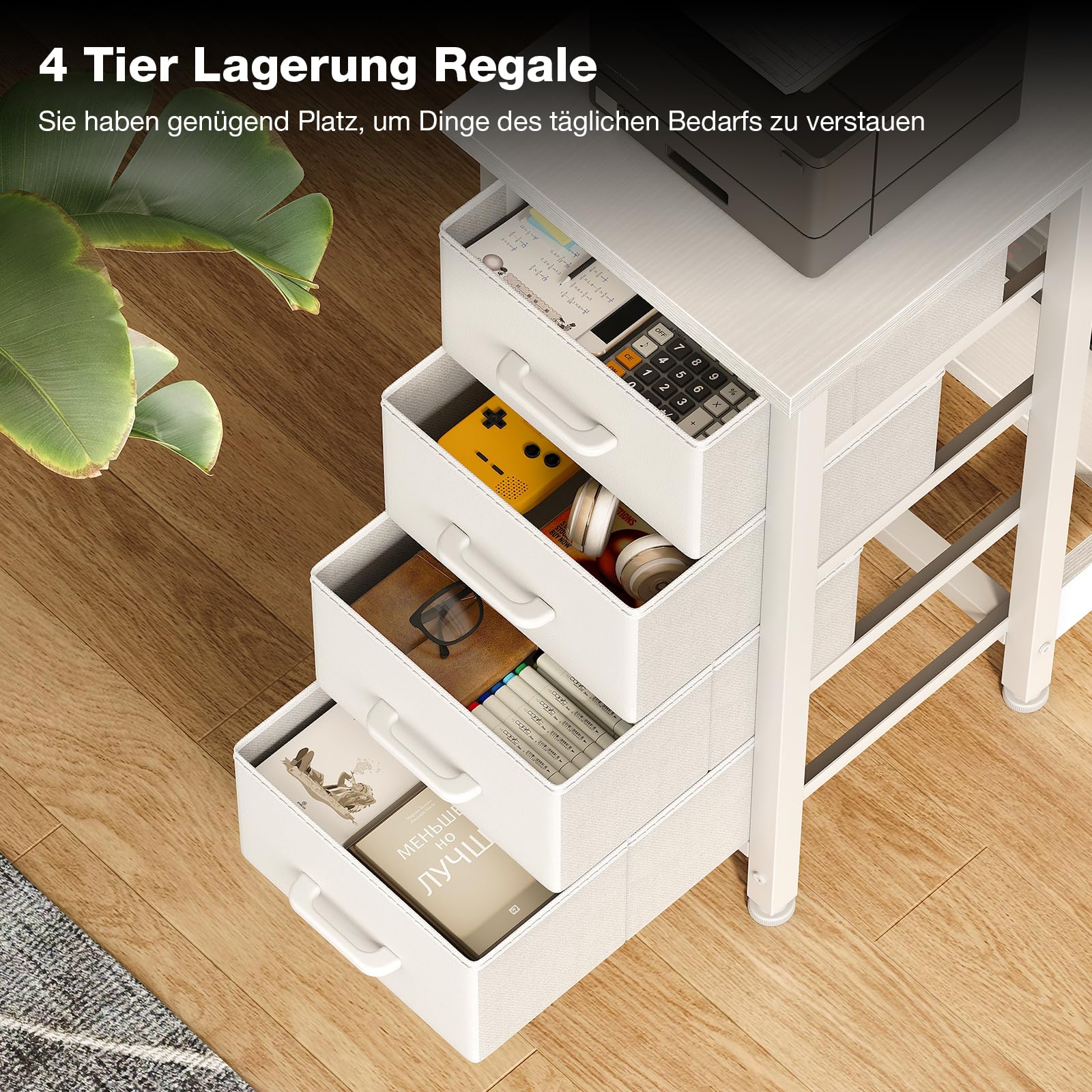 - Integrierter Stauraum: Vier geräumige Stoffschubladen bieten grosszügigen Platz für Büromaterial, Dokumente und persönliche Gegenstände.